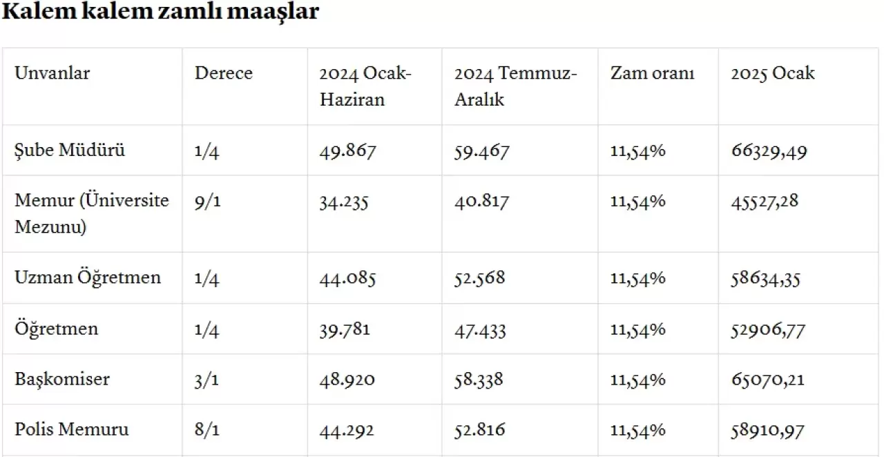 2024'ün ikinci yarısında ise memurların maaşlarına yapılan toplam artış oranı yüzde 19,31 oldu. Bu oran, yüzde 10’luk toplu sözleşme zammı ile yüzde 9,31’lik enflasyon farkının birleşimiyle ortaya çıktı. Memur ve memur emeklileri için bu artış, özellikle yıllık enflasyon oranlarının gerisinde kalsa da, enflasyon karşısında alınan zamlar bir nebze olsun yaşam standartlarını iyileştirmeye yönelik bir adım olarak değerlendiriliyor.