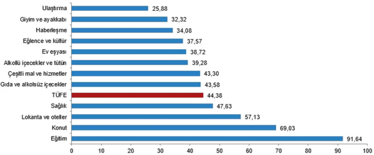 Aralık ayında en düşük enflasyon artışı ise ulaştırma grubunda görüldü. Yıllık bazda ulaştırma grubunda fiyatlar yalnızca yüzde 25,88 oranında artış gösterdi. Bu, özellikle yakıt fiyatlarındaki stabilitenin ve ulaşım maliyetlerinin daha az artış göstermesinin bir sonucu olarak değerlendiriliyor. Ulaştırma sektörü, son yıllarda sık sık fiyat artışlarıyla gündeme gelse de 2024 Aralık ayı itibarıyla en düşük artışla dikkat çekti.