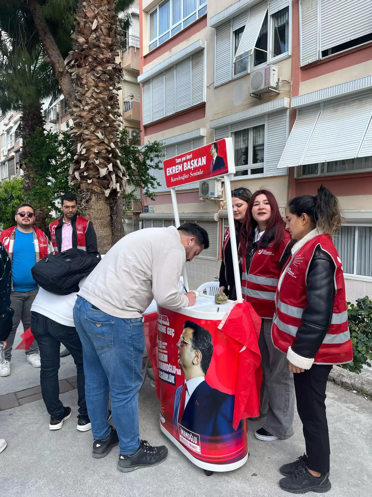 CHP İzmir Demokrasi Üniversitesi Komisyonu Başkanı Emrullah Yiğit, etkinliğin yalnızca bir destek kampanyası değil, bir duruş olduğunun altını çizerek, “Bugün İzmir Demokrasi Üniversitesi önünde Karabağlar Gençlik Kollarımız ile birlikte, CHP'nin 13. Cumhurbaşkanı adayı Sayın Ekrem İmamoğlu için bir imza kampanyası düzenledik. Bu kampanya, sadece bir siyasetçiye destek verme meselesi değil; aynı zamanda gençliğin adalet, eşitlik ve özgürlük taleplerinin güçlü bir ifadesidir” dedi.