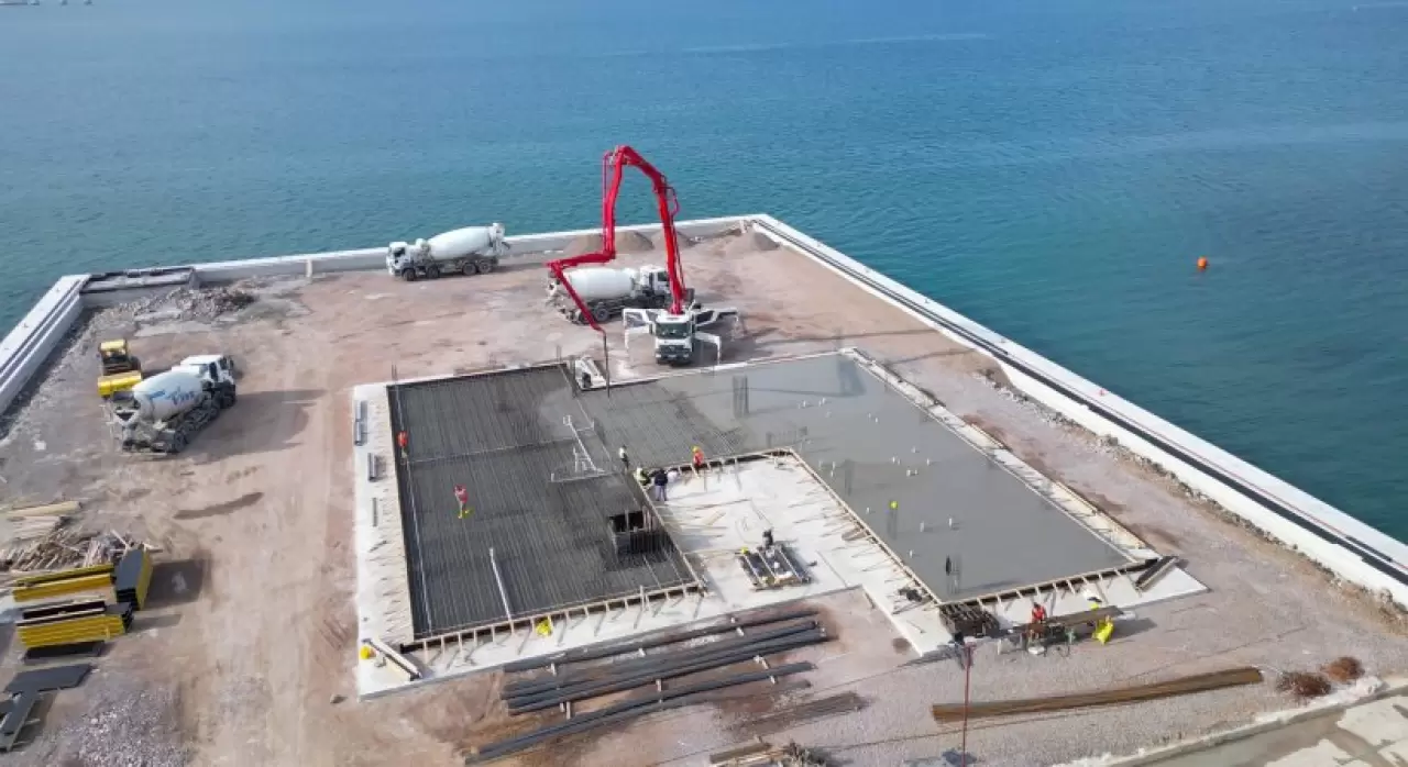 Aliağa’yı Kuzey Ege’nin turizmde öncü kentlerinden biri haline dönüştürecek Aliağa Yolcu İskelesi’nde çalışmalar tüm hızıyla sürüyor. Su içi beton ve dolgu çalışmalarının tamamlandığı projede gelen ve giden yolcular için kafeteryaların, gümrüksüz satış mağazalarının ve idari ofislerin yer alacağı bina yapımı için zeminde temel atımı gerçekleştirildi.