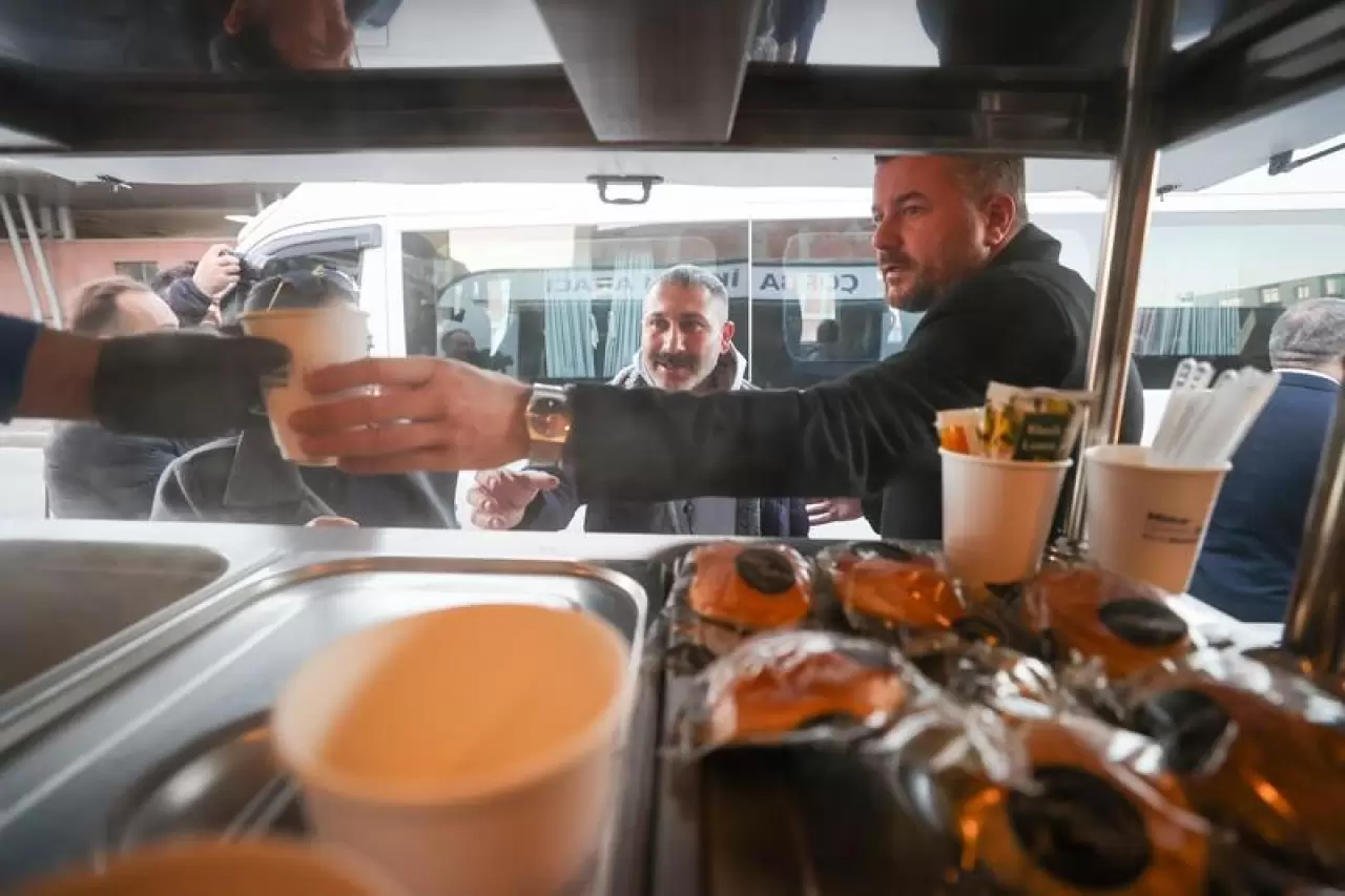 Bucalılara sabah sürprizi yapan Belediye Başkanı Mimar Görkem Duman, Şirinyer İzban İstasyonu girişinde kendi elleri ile çorba dağıttı.