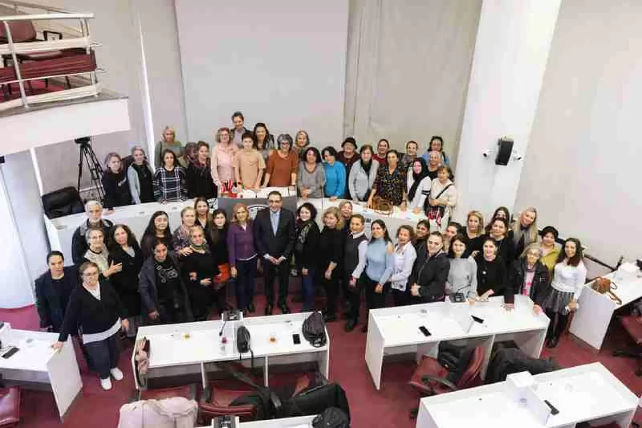 Balçova Belediye Başkanı Onur Yiğit, semt evlerindeki kurslara katılan kadınlarla buluştu. Yiğit, “Amacımız Balçova’daki kadınların gelirini artırıcı çalışmalar yapmak” dedi. Erkeklerin kadınlar üzerinde ekonomik üstünlük kurmalarını ve bunu sürdürmelerini kabul edemeyeceklerini belirten Yiğit, şöyle konuştu: “Biz her zaman, ‘Balçova’daki kadınlara gelir sağlamaya çalışacağız’ dedik. Ev ekonomilerine nasıl katkı sağlarlar konusunu araştırıyoruz. Çalışmalarımızın temel amacı bu. Bunun için üretimde olmak gerekiyor. Bir şey üretmenin keyfi çok başka. Sizler de güzel işler başardınız. Yaptığınız işler ve ortaya çıkardığınız eserler için teşekkür ediyoruz.”