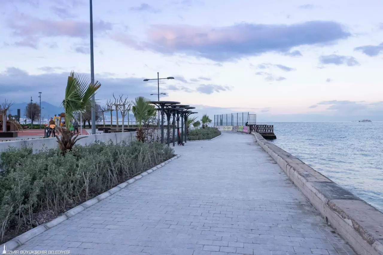 İzmir Büyükşehir Belediyesi, Kordon’u baştan aşağı düzenleyecek çalışmalarda sona geldi. Çalışmalar kapsamında deniz taşkınlarını önleyecek geçici fırtına duvarı yapımı tamamlanırken Kordon’un bakım, onarım ve peyzaj çalışmaları tüm hızıyla devam ediyor. Çalışmalar kapsamında, Kordon boyunca, zemin yenilemesi, kent mobilyaları ve sosyal donatı malzemelerinin, çocuk oyun alanlarının montajı yapılacak. Park ve Bahçeler Dairesi Başkanlığı tarafından fırtına duvarı ve çevresinde çok sayıda bitki ve ağaç dikimiyle alan yemyeşil bir görünüme kavuşturulacak. Çalışmaların tamamlanmasıyla Kordon, baştan sona yenilenerek uzun yılların yarattığı yorgun yapısından kurtulmuş olacak.