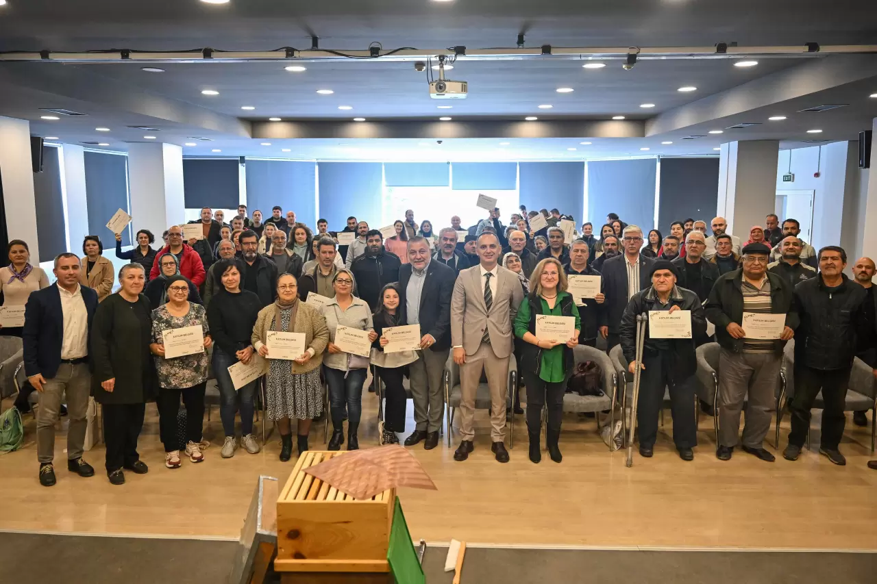 Uğur Mumcu Kültür Merkezi’nde başlayan eğitimler, 8 haftalık teorik sürecin ardından Kayadibi’deki arılıkta 2 haftalık pratik uygulamalarla tamamlandı. Eğitimi başarıyla tamamlayan vatandaşlara, bir arılı kovan ile birlikte tüm arıcılık ekipmanları da hediye edildi. Ekipmanlarla birlikte kursiyerlerin sertifikalarını Bornova Belediyesi Başkan Vekili Tansel Ertürk ve Başkan Yardımcısı Barbaros Taşer verdi.