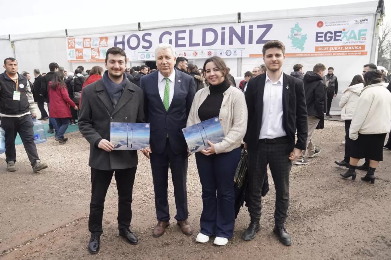 Cumhurbaşkanlığı İnsan Kaynakları Ofisi himayesinde, öğrenci ve mezunların iş hayatını tanımaları ve istihdam edilebilirliklerinin artırılması amacıyla gerçekleştirilen Ege Kariyer Fuarı (EGEKAF) 2025, Manisa Celal Bayar Üniversitesi ev sahipliğinde Şehzadeler Yerleşkesinde kapılarını ziyaretçilerine açtı. Açılış törenine Cumhurbaşkanlığı İnsan Kaynakları Ofisi Başkanı Doç. Dr. Salim Atay’ın yanı sıra il protokolü, üniversite rektörleri ve çok sayıda öğrenci katıldı. Etkinliğin 15 paydaş üniversitesinden biri olan Ege Üniversitesi de açtığı stantla güçlü bir şekilde fuar alanındaki yerini aldı.
