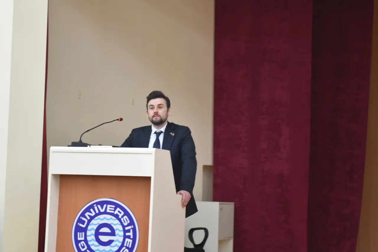 Ege Üniversitesi (EÜ), geleceğin teknolojilerini üretecek gençleri bir araya getirmeye devam ediyor. EÜ Mühendislik Fakültesi Turgut Yazıcıoğlu Konferans Salonu’nda gerçekleştirilen “TEKNOFEST Bilgilendirme ve Takım Buluşması” etkinliğinde, T3 Vakfı İzmir İl Sorumlusu Türker Yaşın, öğrencilerle bir araya gelerek başvuru süreçleri, proje geliştirme aşamaları ve Milli Teknoloji Hamlesinin toplumsal önemi hakkında kapsamlı bir sunum gerçekleştirdi.