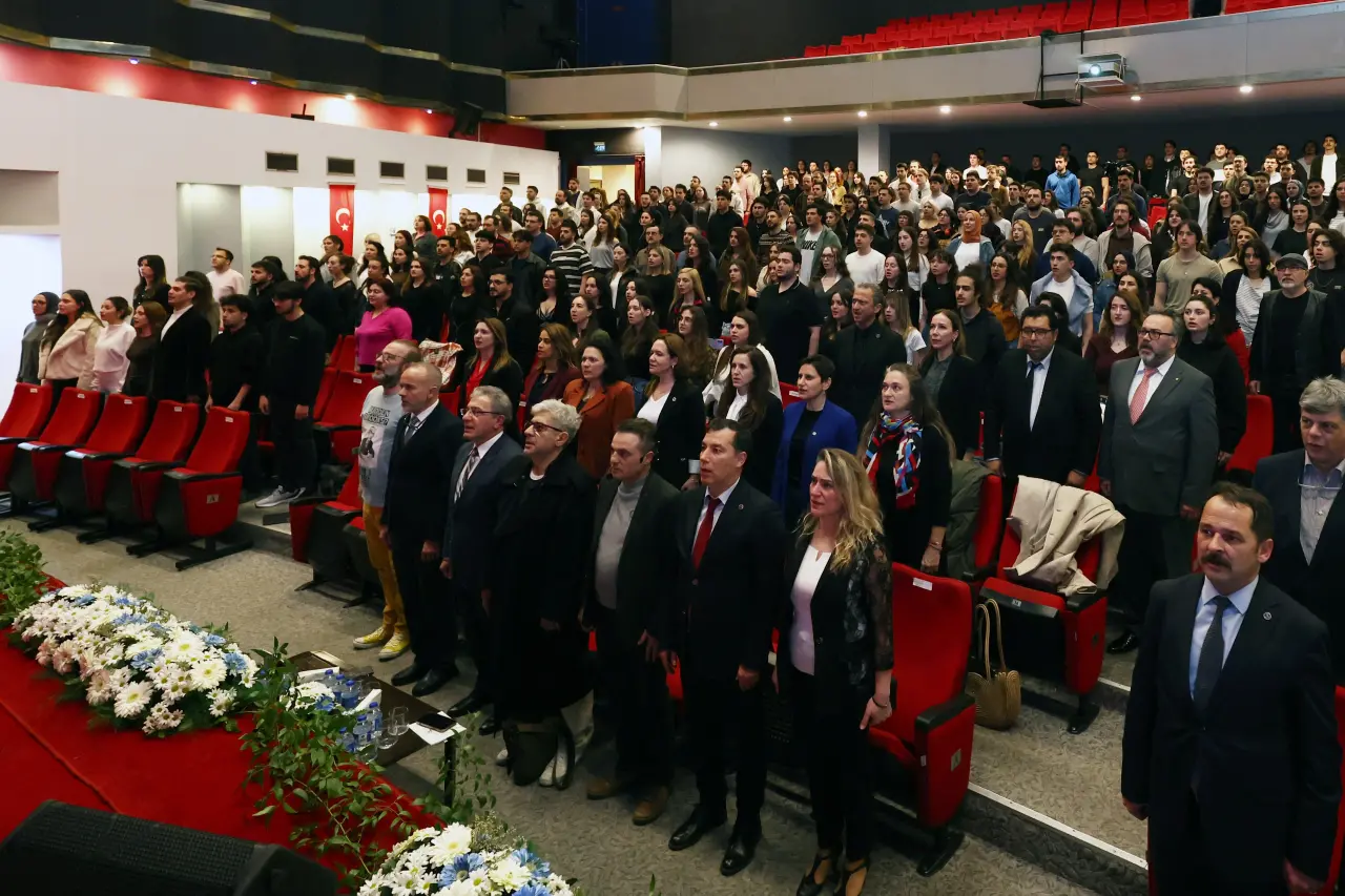 Dokuz Eylül Üniversitesi (DEÜ), alanında uzman isimleri akademi dünyasıyla buluşturmaya devam ediyor. DEÜ Sabancı Kültür Sarayı’nda düzenlenen etkinliğin moderatörlüğünü iletişimci, yazar-şair ve çevirmen Atakan Yavuz üstlendi. Programa, DEÜ Rektörü Prof. Dr. Bayram Yılmaz, Rektör Yardımcısı Prof. Dr. Mehmet Birhan Yılmaz, Genel Sekreter V. Prof. Dr. Dündar Yener, akademik ve idari yöneticiler ile çok sayıda akademisyen ve öğrenci katıldı.