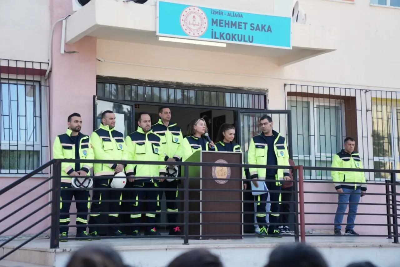 Aliağa Belediyesi Arama Kurtarma Ekibi (ABAK), 1–7 Mart Deprem Haftası kapsamında Mehmet Saka İlkokulu ve Mehmet Saka Ortaokulu’nda deprem farkındalık etkinliği gerçekleştirdi.