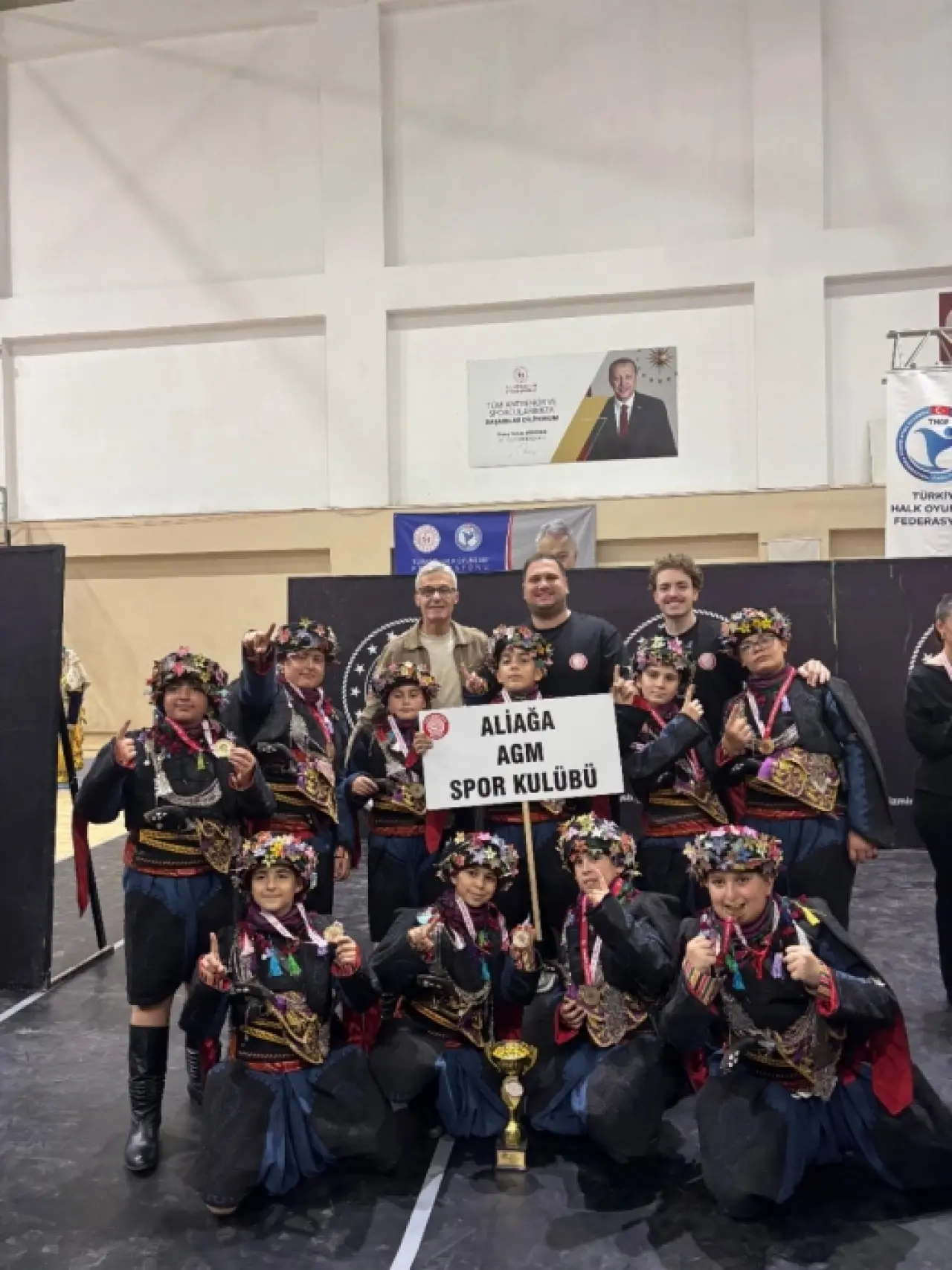 Türkiye Halk Oyunları Federasyonu tarafından 15 Mart 2026 tarihinde İzmir’de düzenlenen İzmir İl Birinciliği Müsabakalarında Aliağa Belediyesi Gençlik Merkezi Spor Kulübü önemli bir başarıya imza attı. Geleneksel Düzenlemesiz Dal Minikler Kategorisinde yarışan Aliağalı ekip, toplam 29 ekibin katıldığı organizasyonda rakiplerini geride bırakarak kendi branşında il birincisi oldu.