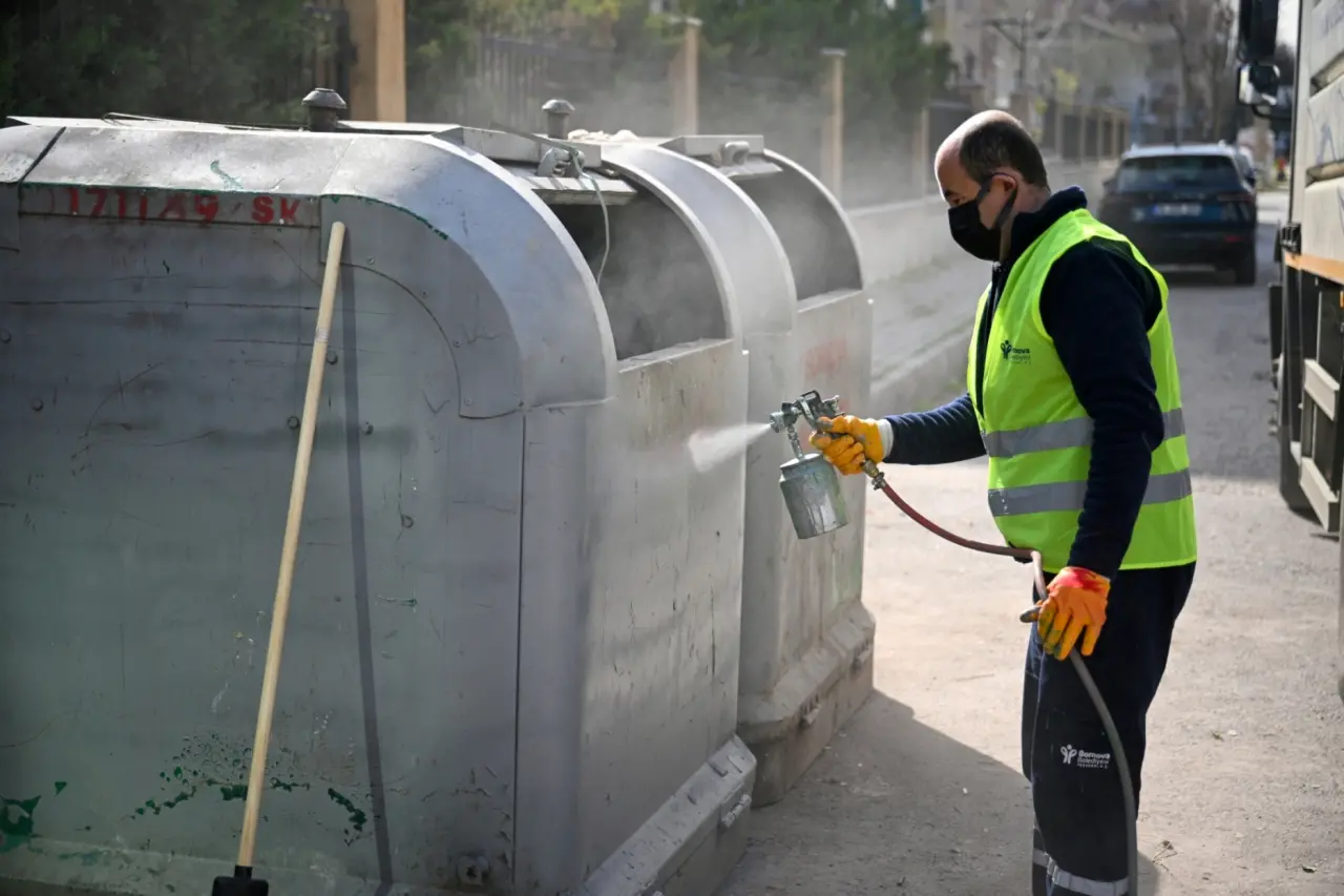 Çalışmalar kapsamında mahalledeki çöp konteynerleri de yerinde yıkanarak dezenfekte edildi. Kullanım nedeniyle yıpranan konteynerler ise boyanarak daha temiz ve düzenli bir görünüme kavuşturuldu.