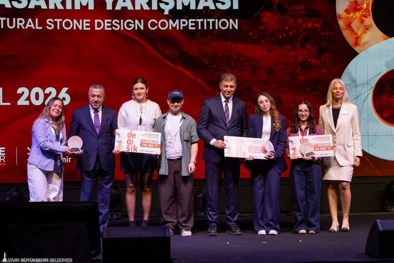 Ödül töreninde konuşan İzmir Büyükşehir Belediye Başkanı Dr. Cemil Tugay, Marble İzmir’in doğaltaş sektörünü dünyaya açtığını belirterek, “Dünyanın dört bir yanından mimarları, üreticileri ve alım heyetlerini İzmir’de bir araya getiren bu büyük organizasyon, ülkemizin sahip olduğu zenginlikleri de görünür kılıyor. Türkiye, dünya doğal taş rezervlerinin yaklaşık yüzde 35’ine sahip. 120’nin üzerinde renk ve desende mermerimiz, Marble İzmir sayesinde küresel pazarda hak ettiği değeri buluyor. Ama artık sadece üretmek yetmiyor; katma değer yaratmak ve fark yaratmak gerekiyor. İşte bu noktada tasarım devreye giriyor. Bugün ödüllerini vereceğimiz 8. Değişik Doğal Taş Tasarım Yarışması, bu anlayışın bir ürünü. Doğal taşı yalnızca hammadde olmaktan çıkaran, estetik, işlev ve yaratıcılıkla buluşturan bir vizyonu yansıtıyor. Bu yarışmayı, doğal taş sektörünün uluslararası pazardaki rekabet gücünü artırmak ve genç tasarımcıları desteklemek amacıyla düzenliyoruz” dedi.