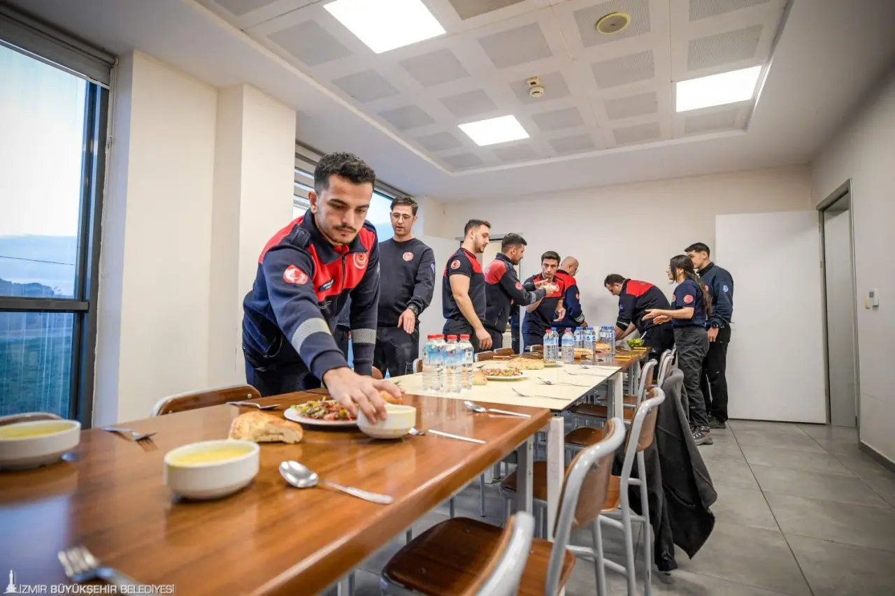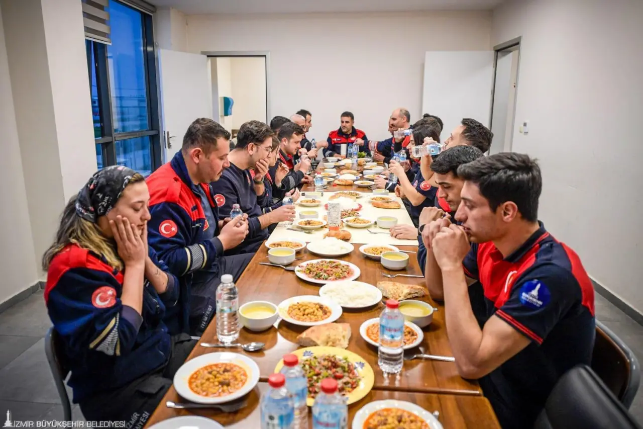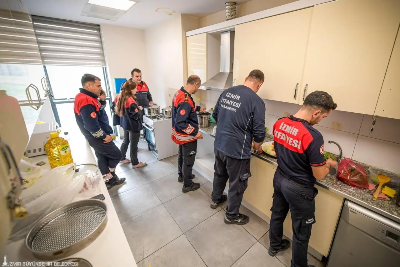 İzmir Büyükşehir Belediyesi İtfaiye Dairesi Başkanlığı’nda ekip ruhu yalnızca sahada değil, her alanda kendini gösteriyor. Ramazan ayı nedeniyle kurulan iftar sofrası için kimi çorba yapıyor, kimi salata hazırlıyor. Birbirinden lezzetli yemekler, tüm ekibin katkısıyla hazırlanıyor. Ateş savaşçıları sofralarını imece usulü kurarken, bir ihbar geldiğinde ise tüm ekip tereddüt etmeden sofradan kalkıp göreve koşuyor.