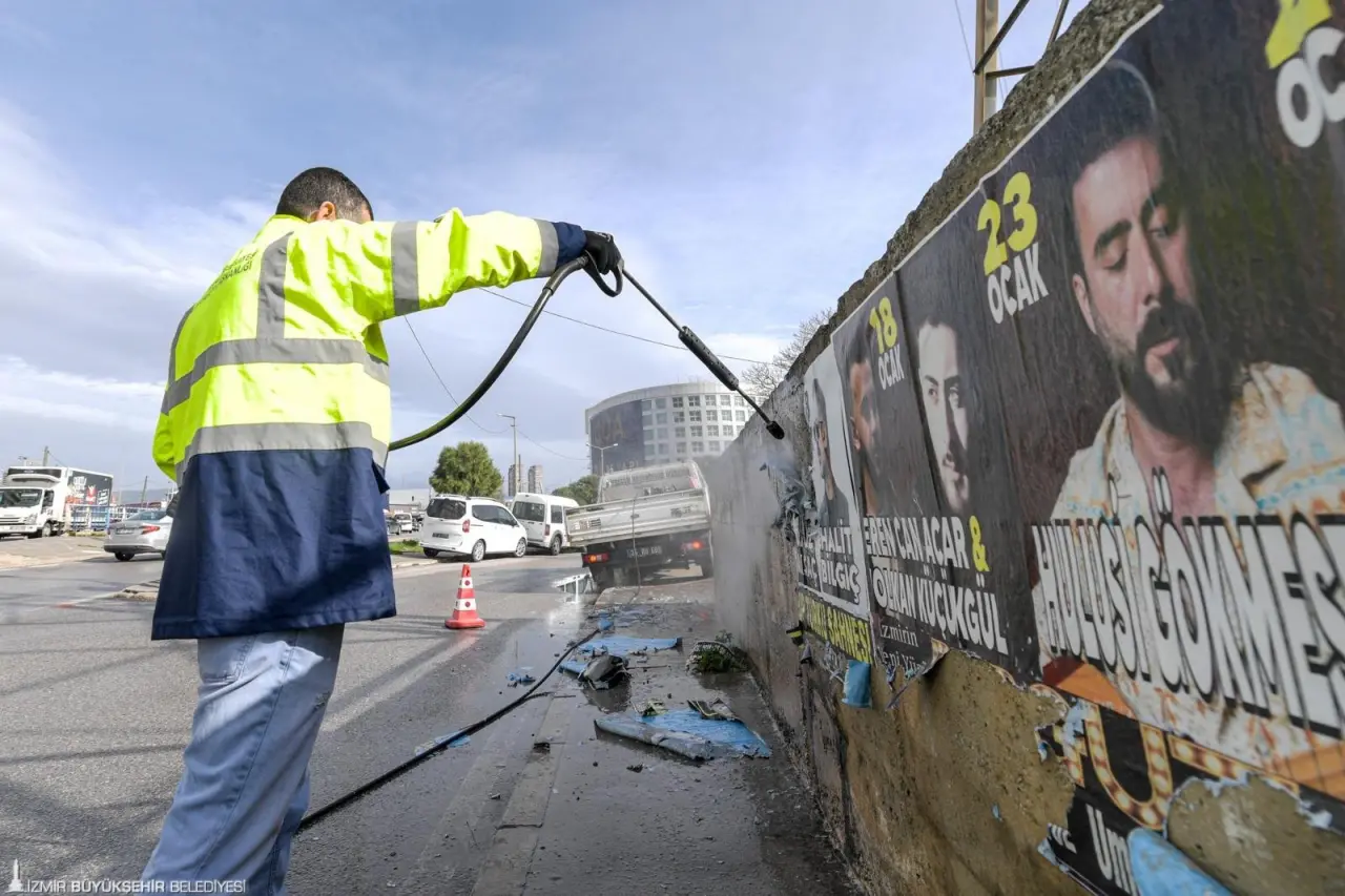 İzmir Büyükşehir Belediyesi Zabıta Dairesi Başkanlığı, kent estetiğini korumak ve kamusal alanların izinsiz kullanımını önlemek amacıyla izinsiz ilan ve reklamlara yönelik denetim ve kaldırma çalışmalarını sürdürüyor. Ekipler, belediye sınırları içinde elektrik direkleri, duvarlar, üst geçitler ve kamuya ait alanlara izinsiz asılan afişleri tek tek söküyor. İzmir Büyükşehir Belediyesi İlan ve Reklam Yönetmeliği’ne aykırı afişler kaldırılırken, gerekli temizlik çalışmaları da eş zamanlı olarak gerçekleştiriliyor. Ayrıca sorumlular hakkında İzmir Büyükşehir Belediyesi Emir ve Yasaklar Yönetmeliği ile 5326 sayılı Kabahatler Kanunu kapsamında idari yaptırımlar uygulanıyor. İzinsiz uygulamalar nedeniyle oluşan söküm ve temizlik masrafları ise ilgililerden tahsil ediliyor.