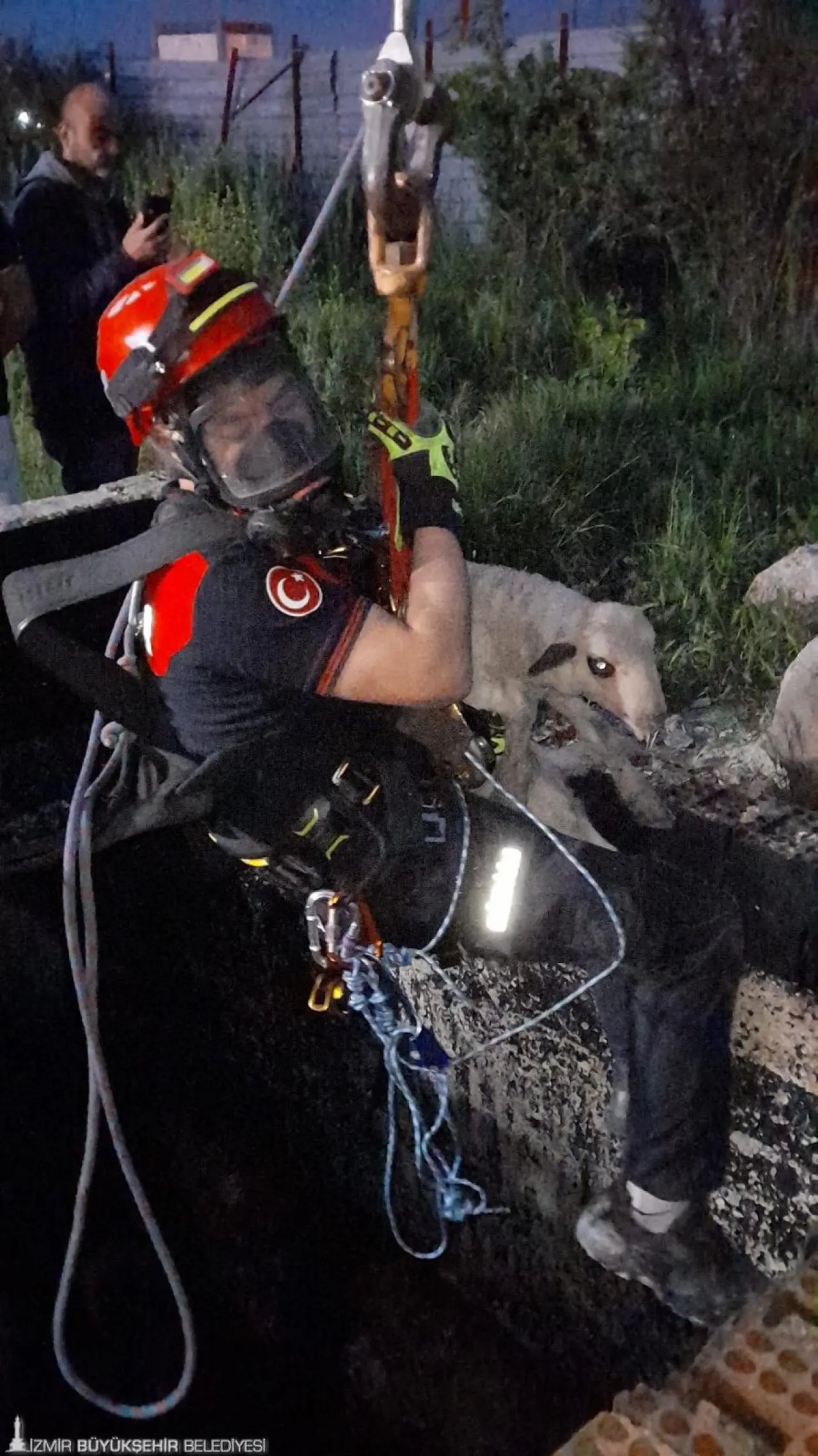İzmir’de 20 metrelik kuyuya düşen kuzu, itfaiye ekiplerinin titiz ve güvenlik önlemleriyle yürüttüğü çalışma sonucu sağ salim kurtarılarak sahibine teslim edildi.