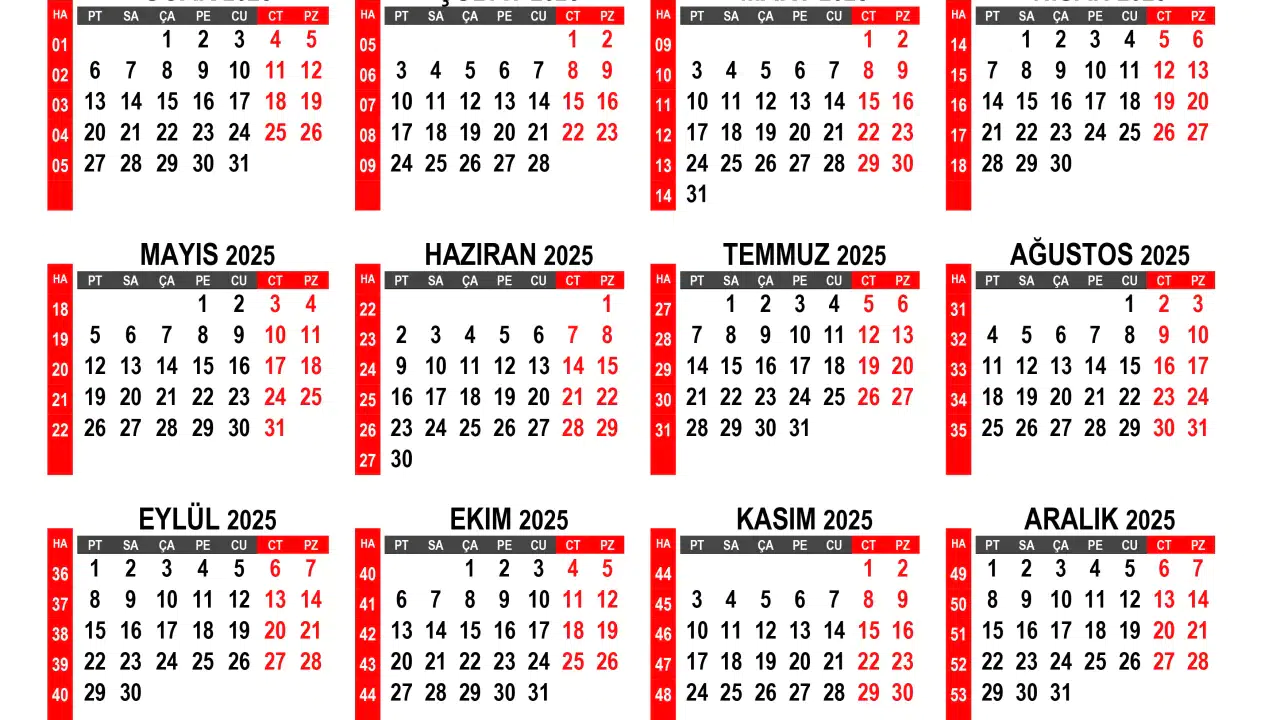 2025 Yılı Resmi ve Dini Tatiller: Hangi Günler Tatil?