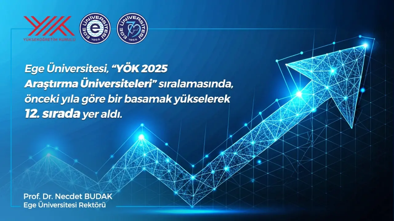 Ege Üniversitesi'nin 70 yıllık bilgi birikimini ve deneyimini Türkiye’nin hedefleri doğrultusunda kullanmaya devem edeceğini ifade eden Rektör Prof. Dr. Necdet Budak, “Farklı disiplinleri bir araya getirerek oluşturduğumuz dinamik araştırma gruplarımızla, ortak akıl ilkesiyle ürettiğimiz bilimsel çıktılar sayesinde üniversitemizin araştırma kapasitesi ve kalitesini her geçen gün daha da güçlendiriyoruz. Üniversitemizin 70 yıllık bilgi birikimini ve deneyimini ülkemizin ihtiyaçları doğrultusunda kullanmayı sürdüreceğiz. Bu başarımızda bizlerden desteğini hiçbir zaman esirgemeyen Cumhurbaşkanımız Sayın Recep Tayyip Erdoğan’a ve YÖK Başkanımız Prof. Dr. Erol Özvar’a şükranlarımı sunuyorum. Akademik ekosistemimizde ortaya koyduğumuz araştırma birikimini görünür kılarak Türk yükseköğretimindeki başarımıza katkı sunan tüm mensuplarımızı tebrik ediyorum. Ege Üniversitesi olarak güçlendirdiğimiz araştırma üniversitesi kimliğimizle; eğitim-öğretimden araştırma geliştirmeye, sosyal sorumluluktan toplumsal katkıya, dijitalleşmeden uluslararası görünürlüğe kadar her alanda daha nitelikli çalışmalara imza atarak ülkemizin Türkiye Yüzyılı hedeflerine ve bilimsel gelişimine katkı sunmaya devam edeceğiz” dedi.