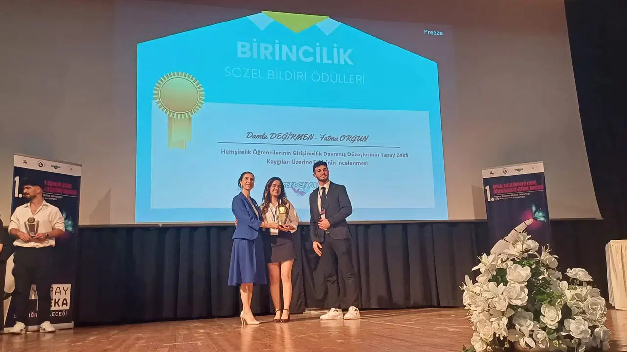 Ege Üniversitesi Hemşirelik Fakültesi Öğretim Üyesi Prof. Dr. Fatma Orgun danışmanlığında ve Hemşirelik Fakültesi 4.sınıf öğrencisi Damla Değirmen tarafından yürütülen "Hemşirelik Öğrencilerinin Girişimcilik Davranış Düzeylerinin Yapay Zekâ Kaygıları Üzerine Etkisinin İncelenmesi" başlıklı TÜBİTAK 2209-A projesi, “I. Ulusal Sağlık Bilimleri Lisans Öğrencilerini Geliştirme Kongresi”nde sözel bildiri olarak sunulmuş ve “Sözel Bildiri Birincilik Ödülü”ne layık görüldü.
