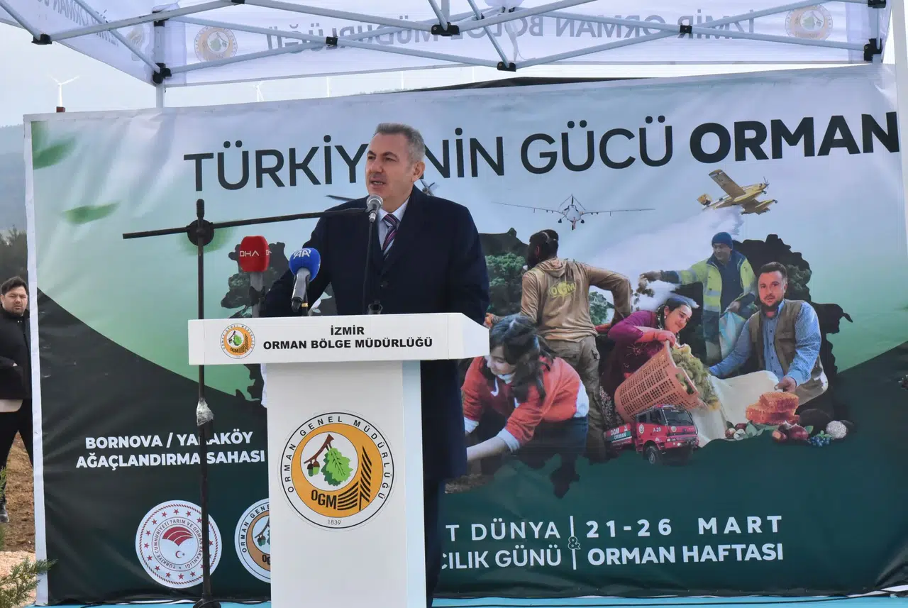 İzmir Orman Bölge Müdürü Mahmut Yılmaz ise “Birleşmiş Milletler Gıda ve Tarım Örgütü FAO'nun 2025 yılında yayımladığı Küresel Orman Kaynakları Değerlendirmesi Raporu'na göre, ağaçlandırma yapan ülkeler sıralamasında Avrupa'da birinci, dünyada ise üçüncü sıradayız. Geçtiğimiz yıl, yangınlarından etkilenen sahalar başta olmak üzere il genelinde 2 milyon 129 bin fidan ile 14 milyon 637 bin tohumu toprakla buluşturduk” diye konuştu.