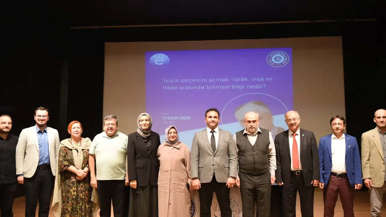 Ege Üniversitesi (EÜ) Birgivi İlahiyat Fakültesi tarafından “İsis’in Peçesini Açmak: İdrâk, İnşâ ve İfâde Arasında ‘Bilimsel Bilgi’ Nedir?” başlıklı konferans düzenlendi.