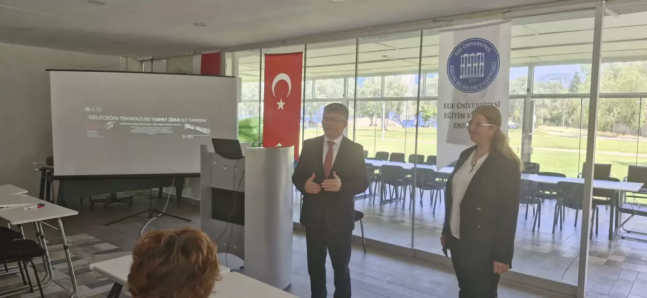 Ege Üniversitesi Eğitim Bilimleri Enstitüsü ev sahipliğinde, Bilgisayar ve Öğretim Teknolojileri Eğitimi (BÖTE) yüksek lisans programı kapsamında hayata geçirilen "Akademide Kullanılan Yapay Zekâ Araçları Online Eğitim Platformu" tanıtıldı.
