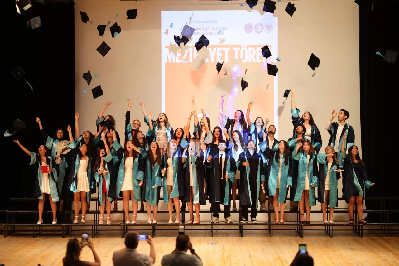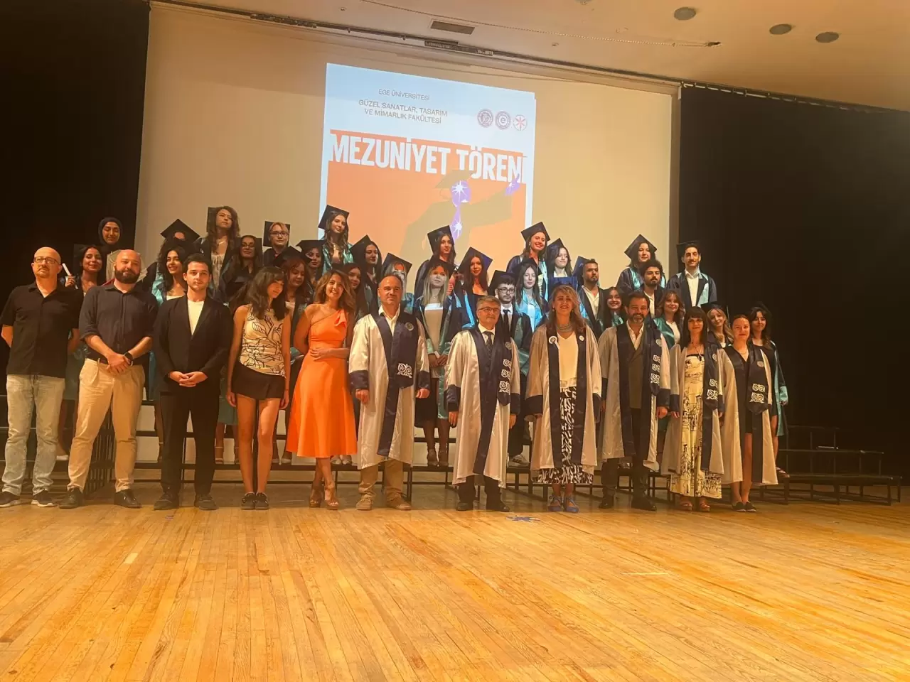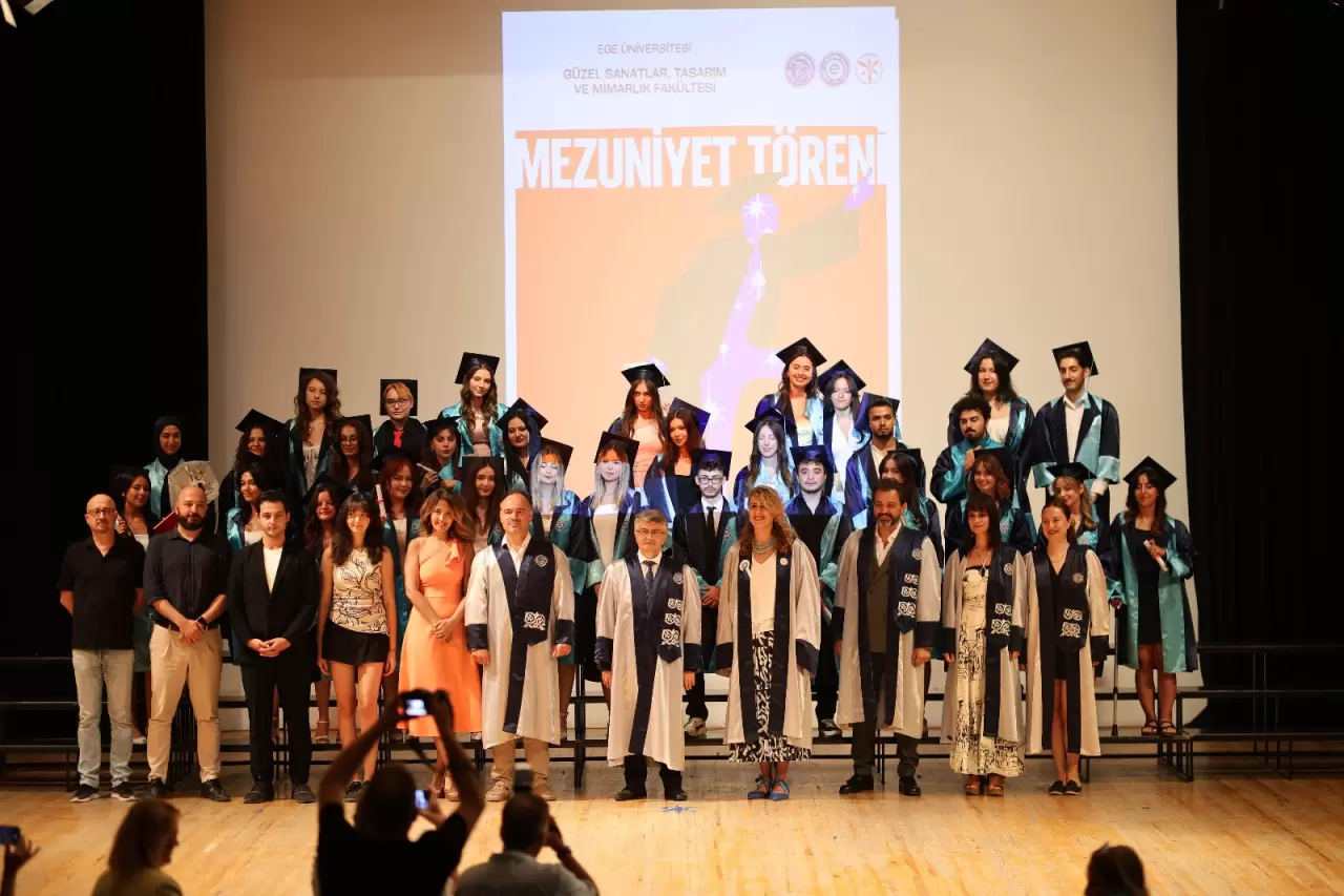 Ege Üniversitesi Güzel Sanatlar, Tasarım ve Mimarlık Fakültesi (GSTMF) 4. dönem mezunlarını, Prof. Dr. Yusuf Vardar – MÖTBE Kültür Merkezinde gerçekleşen törenle sektöre uğurladı. Törene, Ege Üniversitesi Rektör Yardımcısı Prof. Dr. Mehmet Ersan, GSTMF Dekanı Prof. Dr. Alev Fatoş Parsa, Dekan Yardımcısı ve Görsel İletişim Tasarımı Bölüm Başkanı Prof. Dr. Cem Güzeloğlu’nun yanı sıra akademisyenler, mezun öğrenciler ve aileleri katıldı.