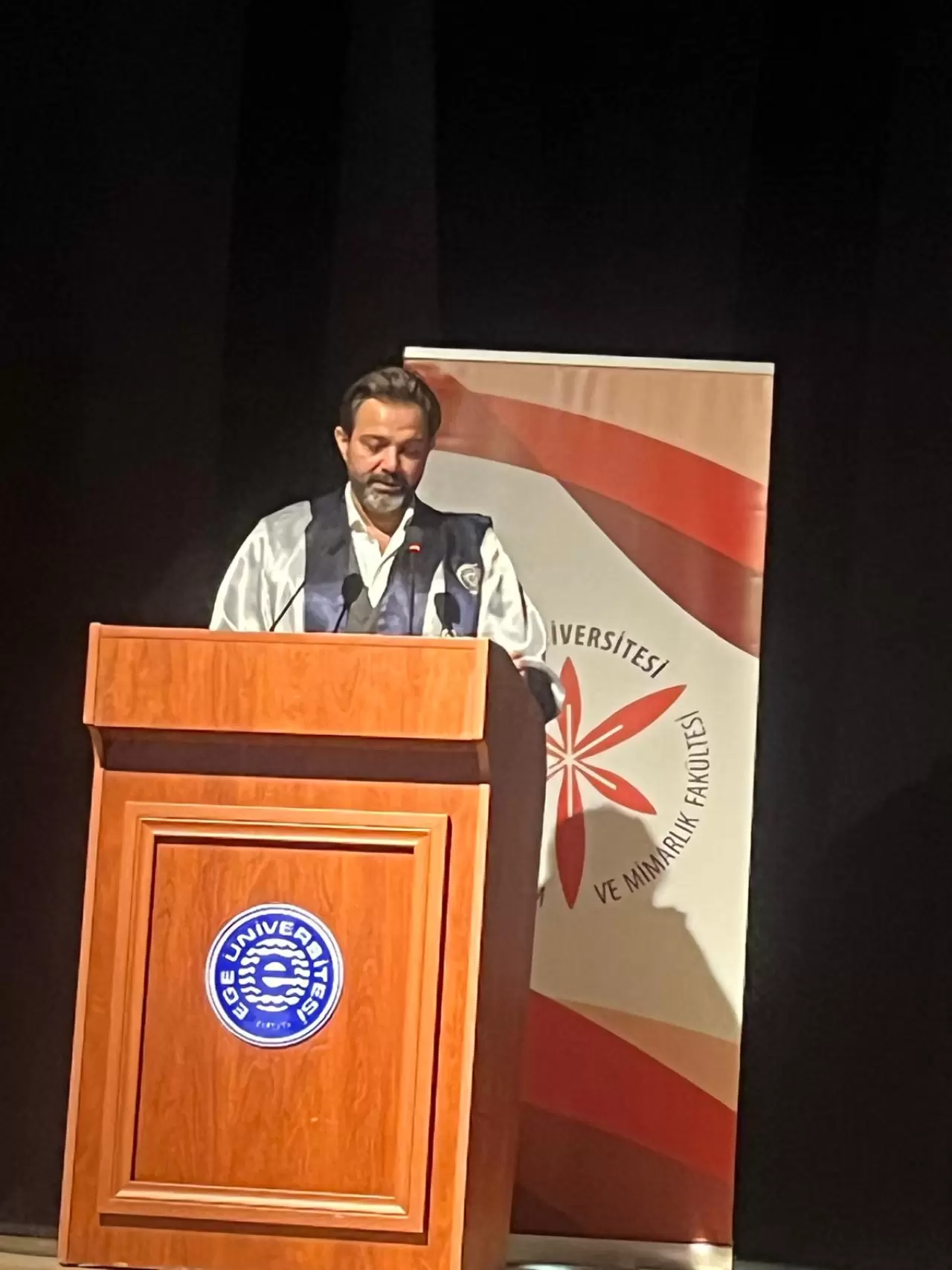Törenin açılışında konuşan Prof. Dr. Mehmet Ersan, “Bugün burada, Ege Üniversitesi olarak bilim, eğitim ve kültür alanlarında elde ettiğimiz başarıları kutlamak ve bu başarıları birlikte inşa etmenin gururunu paylaşmak için toplandık. 1955 yılından bu yana hem Türkiye'nin hem de dünyanın en saygın üniversitelerinden biri olma yolunda ilerleyen Ege Üniversitesi, İzmir’in ve bölgemizin köklü bir eğitim kurumu olarak bilimsel gelişmelerin öncüsü olmuştur. Yenilikçi araştırmalarla toplumun her alanında fark yarattık. Öğrencilerimize yalnızca güçlü bir akademik eğitim değil, aynı zamanda onları dünya çapında başarılı bireyler olarak yetiştirecek bir ortam sunmayı amaçladık. Araştırmalarımızı ulusal ve uluslararası alanda daha geniş kitlelere ulaştırma çabamız her geçen gün daha da anlam kazanıyor” dedi.