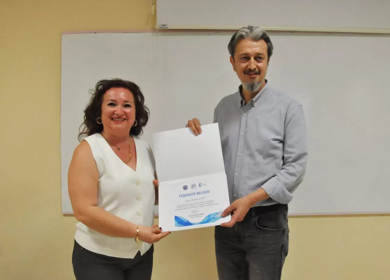 Etkinlik sonunda Dr. Öğr. Üyesi İnce’ye Doç. Dr. İlknur Aydoğdu Karaaslan tarafından “Teşekkür Belgesi” takdim edildi.