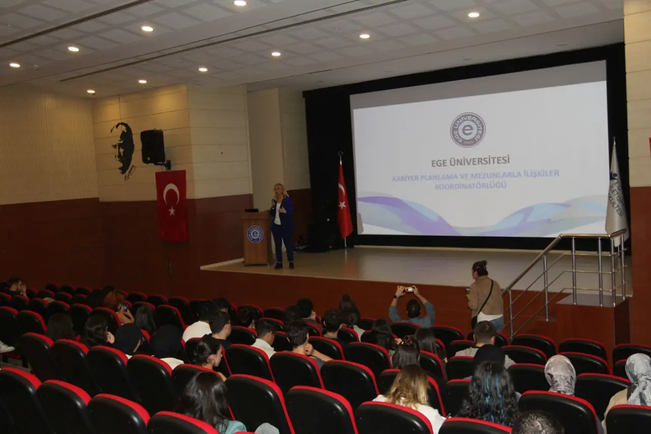 Ege Üniversitesi (EÜ) Kariyer Planlama Koordinatörlüğü, gençlerin kariyer yolculuklarına ışık tutmak amacıyla önemli bir etkinlik düzenledi. Cumhurbaşkanlığı İnsan Kaynakları Ofisi tarafından koordine edilen Kariyer Planlama dersi kapsamında düzenlenen “21. Yüzyıl Yetkinlikleri ile Geleceğin İş Dünyasına Yolculuk” adlı seminer, İletişim Fakültesi Konferans Salonu’nda gerçekleşti. Kariyer Planlama Koordinatörü Öğr. Gör. Ebru Kalyoncu’nun konuşmacı olarak katıldığı seminere İletişim Fakültesi öğrencileri büyük ilgi gösterdi.