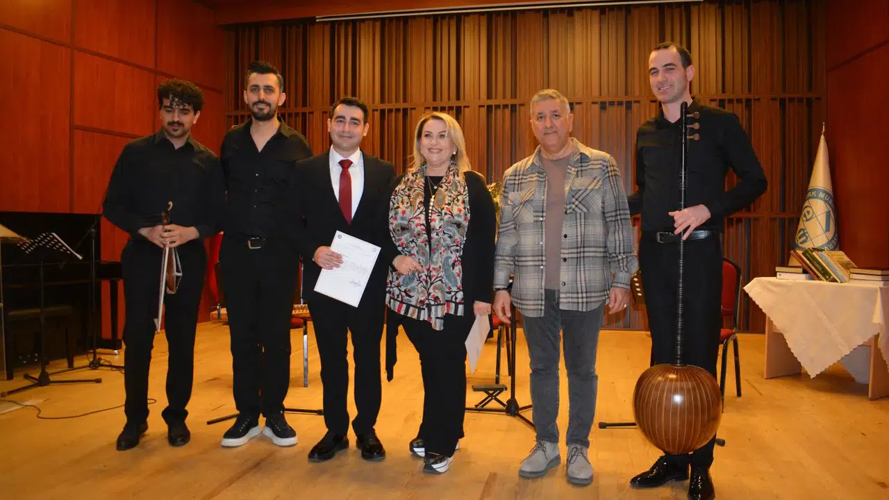 Etkinliğin sonunda, DTMK Müdür Yardımcısı Öğr. Gör. Dr. Ufuk Demirbaş; Muzaffer Aras, sazende ekibi ve Öğr. Gör. Dilek Şafak Çakar’a teşekkür belgelerini takdim etti.
