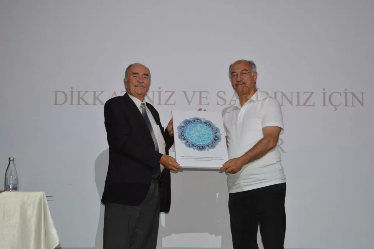 Söyleşi sonunda, Ege Üniversitesi İlahiyat Fakültesi Dekanı Prof. Dr. Hanefi Palabıyık, Prof. Dr. İsmail Yakıt’a katkılarından dolayı “Teşekkür Belgesi” ile birlikte “Yesevi Mührü” takdim etti. Yoğun ilgi gören söyleşi, soru ve cevap bölümüyle sona erdi.