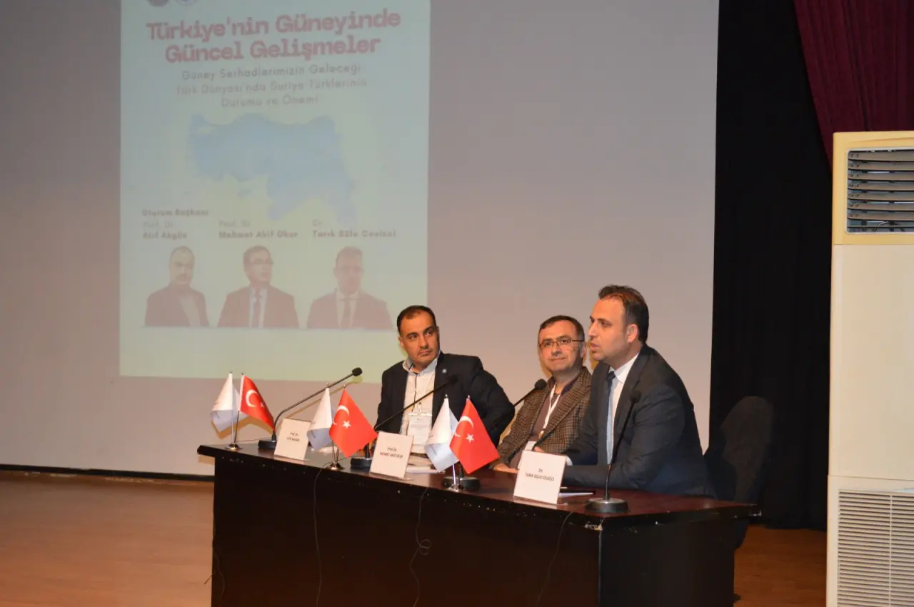 Ege Üniversitesi'nde; Türkiye’nin güneyindeki stratejik gelişmeler, sınır güvenliği ve Türk Dünyasının önemli bir parçası olan Suriye Türkmenlerinin geleceği, uzman isimlerin katılımıyla mercek altına alındı.