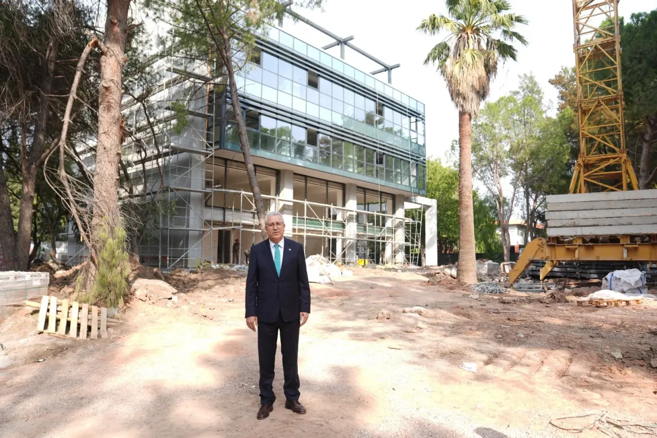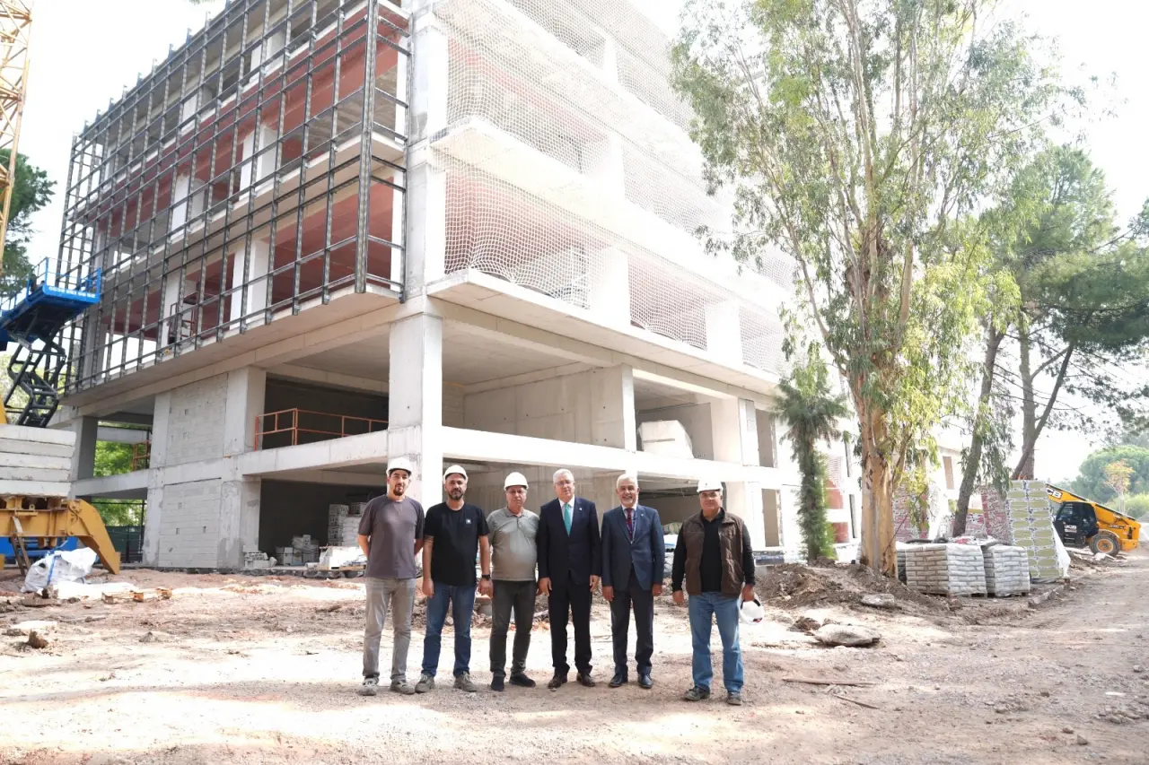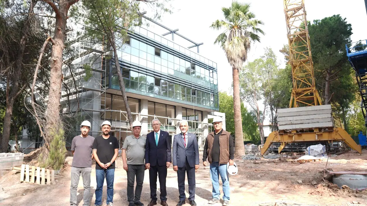 Kaba inşaatı tamamlanan Ege Teknopark inşaatında çalışmalar tüm hızıyla sürerken, Ege Üniversitesi Rektörü Prof. Dr. Necdet Budak,  inşaat alanında incelemelerde bulunarak yetkililerden bilgi aldı.