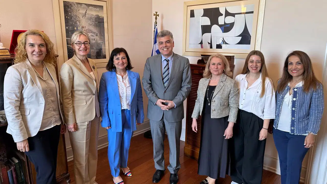 Ege İş Kadınları Derneği (EGİKAD) Yönetim Kurulu, Yunanistan İzmir Başkonsolosu Alexandros Konstas’ı makamında ziyaret etti. Ziyarette EGİKAD’ın uluslararası işbirlikleri ve Avrupa Birliği projelerindeki aktif rolü gündeme gelirken, karşılıklı iş birliği imkanları ve vize süreçlerine ilişkin verimli bir görüşme gerçekleştirildi.