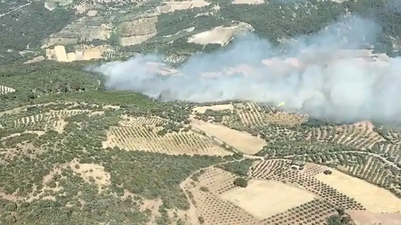 İzmir Orman Bölge Müdürlüğü ekipleri, yangına karşı mücadelede 4 uçak, 4 helikopter, 27 arazöz, 8 su ikmal aracı ve 6 dozer kullanarak çalışmalarına devam ediyor.