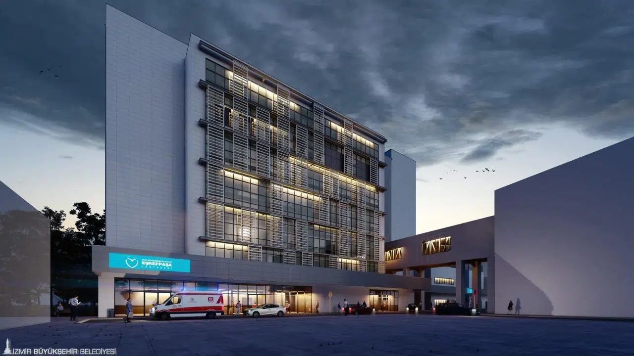 Türkiye’nin ilk ve tek belediye hastanesi İzmir Büyükşehir Belediyesi Eşrefpaşa Hastanesi yeni ek hizmet binası ile modern ve tam teşekküllü sağlık hizmeti vermeye hazırlanıyor. İzmir Büyükşehir Belediye Başkanı Dr. Cemil Tugay’ın 7 Ağustos 2024’te temelini attığı bodrum dahil 7 kattan oluşan binanın beşinci katında imalatlara başlandı. 549 milyon liralık yatırımın 2025 yılı sonunda tamamlanması hedefleniyor.