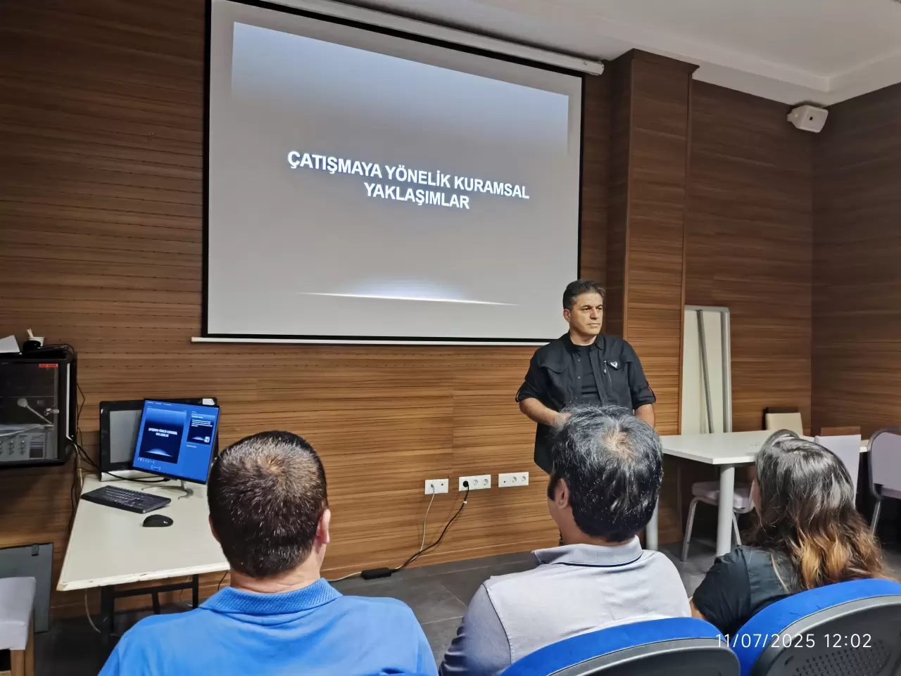Uzman Mustafa Tercan tarafından verilen “İletişim, Çatışma ve Stres Yönetimi Kursu” eğitim ortamlarında karşılaşılabilecek stres ve çatışma durumlarına karşı, kurum çalışanlarına etkili yaklaşım yöntemleri kazandırmayı hedefliyor.