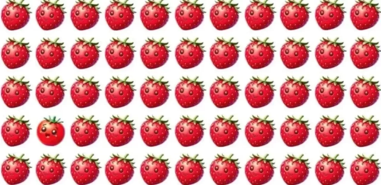 Resimdeki çilekleri dikkatlice inceleyin ve farklı olanı bulmak için gözlerinizi odaklayın. Siz de kısa sürede bu bulmacayı çözebilir misiniz?