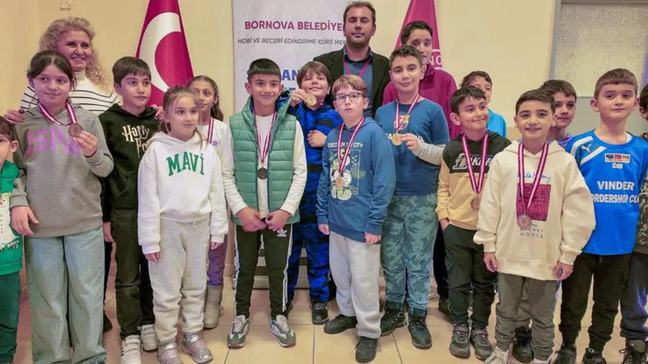 Bornova Belediyesi’nin Hobi ve Beceri Edindirme Kursları kapsamında düzenlediği satranç turnuvasında, dereceye giren 10 çocuğa madalya takdim edildi. İlçenin dört bir yanındaki kurs merkezlerinde bu kış 7-14 yaş arasında 232 çocuk satranç eğitimi alıyor. Her ay kursiyerlerin stratejik düşünme ve yarışmacı yönlerini geliştirmek amacıyla düzenlenen turnuvalar, çocuklardan ve ailelerden yoğun ilgi görüyor.