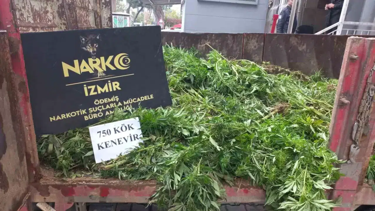 İzmir Narkotik Suçlarla Mücadele Şube Müdürlüğü, Ödemiş Narkotik Suçlarla Mücadele Büro Amirliği ve İstihbarat Şube Müdürlüğü ekipleri, uyuşturucu madde üretimi ve ticareti yapıldığına dair bir ihbarı değerlendirdi. Savcılık koordinesinde harekete geçen ekipler, ilçedeki bir hayvan damına düzenledikleri baskında, 38 kilo 750 gram esrar, 749 kök kenevir bitkisi ve 1 hassas terazi ele geçirdi.