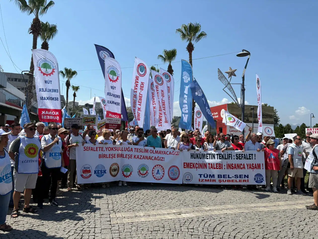 Erdağ basın açıklamasında, “Bugün Türkiye genelinde Birleşik Kamu-İş Konfederasyonu ve tüm sendikaların ortak kararıyla kamu emekçileri olarak iş bıraktık. Bu eylem, yıllardır karşı karşıya kaldığımız sefalet ve yoksulluk koşullarına karşı onurlu bir duruştur. Açlık ve sefalet zamlarına karşı durmak sadece insani bir hak değil; anayasanın ve uluslararası hukukun güvence altına aldığı bir haktır. İzmir’de ise kamu emekçileri Konak Meydanı’nda buluştu. Burada sadece hakklar talep edilmedi; yoksulluğa, adaletsizliğe, emeğin görmezden gelinmesine karşı durulduğu tüm Türkiye’ye gösterildi. 8. Dönem Toplu İş Sözleşmesi’nde hükümetin belirlediği, kamu emekçilerini yoksulluğa sürükleyen teklifi kesin bir şekilde reddedildi. Bizler, emeğimizin karşılığını almak, insanca yaşamak ve çocuklarımıza gururla bakmak istiyoruz. İş bırakma hakkımız, 4857 sayılı İş Kanunu ve 6356 sayılı Sendikalar ve Toplu İş Sözleşmesi Kanunu ile güvence altındadır” ifadelerini kullandı.