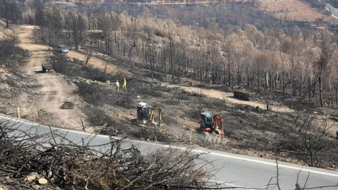 Vali Elban, "Şu anda gördüğünüz üzere sahada önce mevcut yanmış olan ağaçlar temizleniyor.