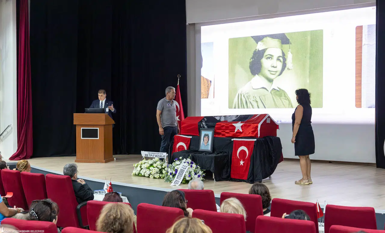 84 yaşında hayatını kaybeden Ege Üniversitesi Tıp Fakültesi Tıbbi Mikrobiyoloji Anabilim Dalı Emekli Öğretim Üyesi Prof. Dr. Emel Tümbay, Ege Üniversitesi Tıp Fakültesi Muhittin Erel Amfisi’nde düzenlenen törenle son yolculuğuna uğurlandı. Ege Üniversitesi Tıp Fakültesi mezunu olan İzmir Büyükşehir Belediye Başkanı Dr. Cemil Tugay da Tümbay’ın öğrencisi olarak törene katıldı. Kürsüye çıkarak hocası ile ilgili anılarını ve düşüncelerini aktaran Başkan Tugay, Tümbay’ın unutulmayacak benzersiz bir hoca ve bilim insanı olduğunu söyledi.