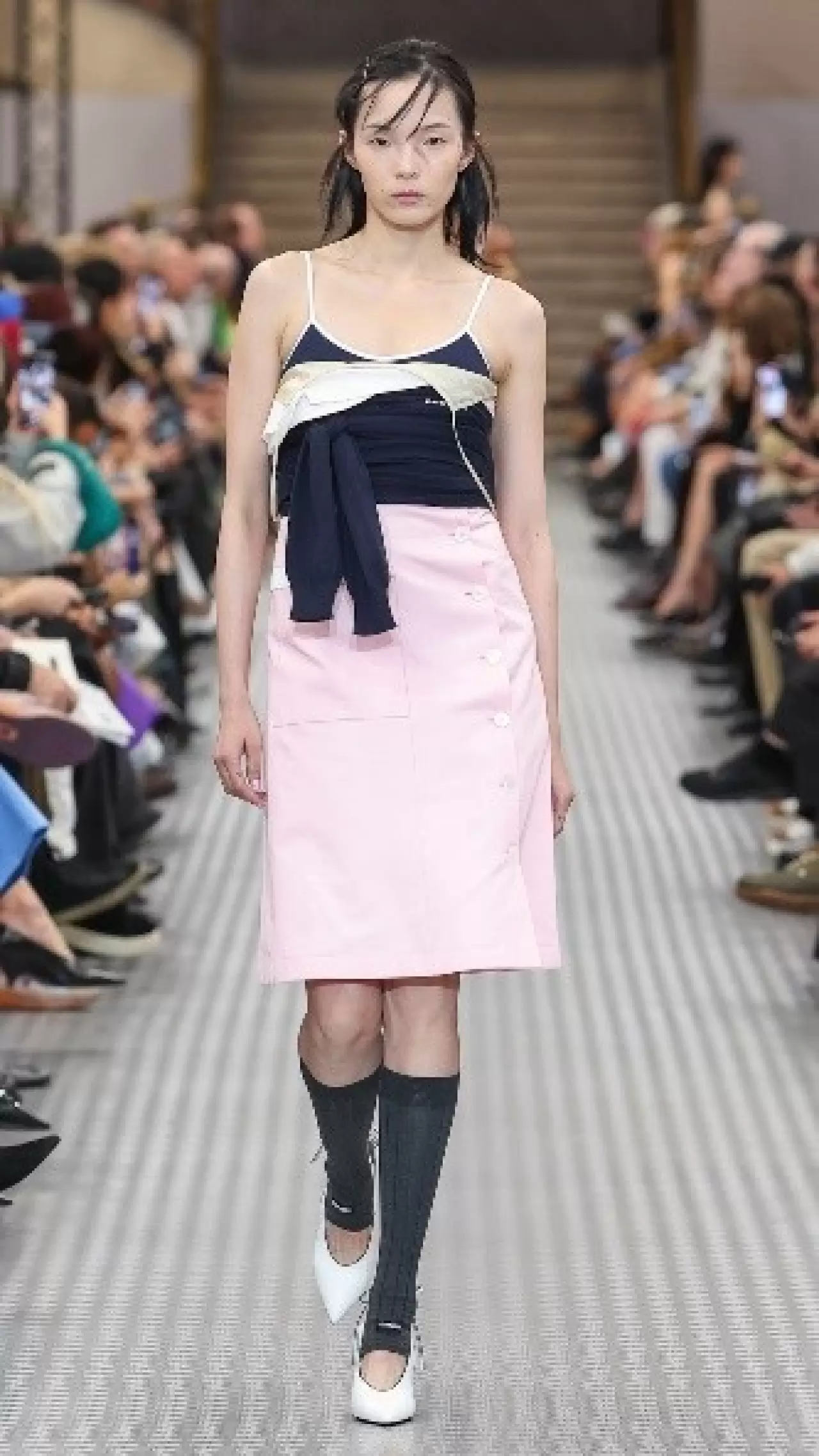 Bahar aylarında pastel renkler her zaman trenddir ancak toz pembe bu sezon daha taze hissettirecek. Sayılamayacak kadar çok bahar podyumunu süsleyen toz pembe giysiler bu rengi alışılagelmiş renk paletini biraz sertlikle dengeledi. Miu Miu, Valentino ve Chanel üst üste katmanlarında pembeyi siyahla kucaklarken Khaite bu hafif renge keskin bir hacim verdi ancak bu sezonun asıl trendi pastel tonları sert kontürlerle dengeli biçimde karıştırmak.