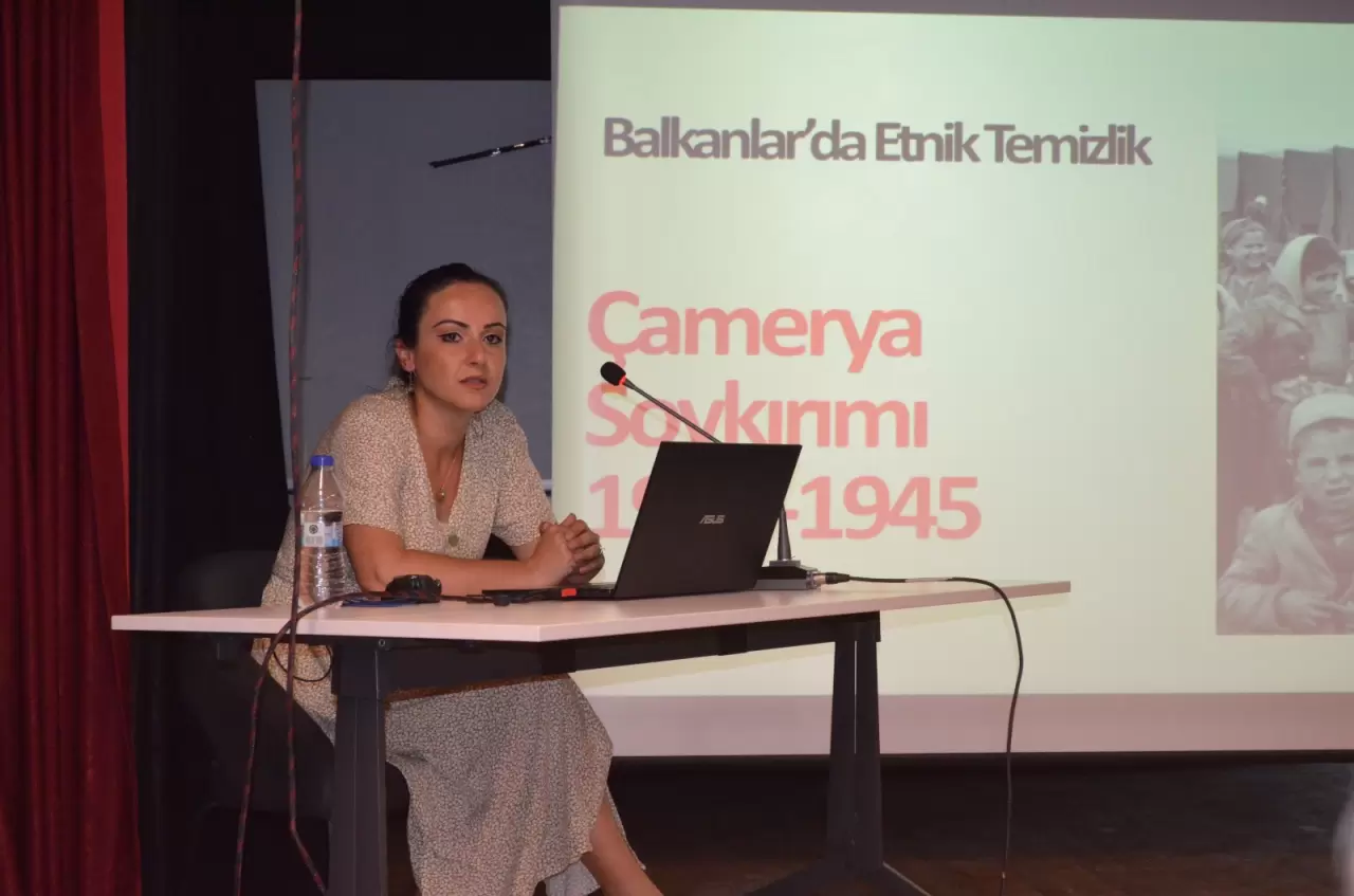 Panelin bir diğer konuşmacısı Dernek Yönetim Kurulu Üyesi Dr. Tuğçe Atik, 27 Haziran 1944 tarihinde Yunanistan’da yaşanan Çameria Arnavutları Soykırımına kadar giden tarihsel dinamikleri analiz etti. Sunumunda dönem fotoğraflarını kullanarak bölgedeki etnik temelli gerilimlerin nasıl bir soykırıma evrildiğini ortaya koydu.