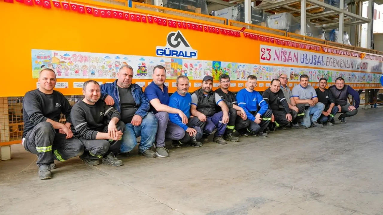 23 Nisan Ulusal Egemenlik ve Çocuk Bayramı kutlamaları çerçevesinde İzmir’de faaliyet gösteren Güralp Vinç farklı bir etkinliğe imza attı. 5 Kıtada 80 ülkeye vinç ihracatı gerçekleştiren Güralp Vinç, Türkiye Cumhuriyeti’nin geleceğinin çocuklara emanet edildiği anlamlı bir günde, kuruluşunun 35. yılında fabrikayı çocukların boyadığı resimlerle sanat galerisine dönüştürdü.