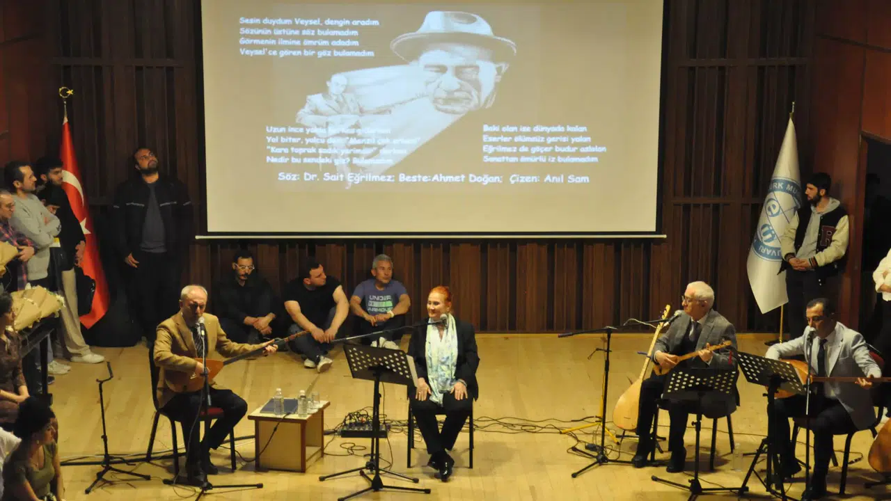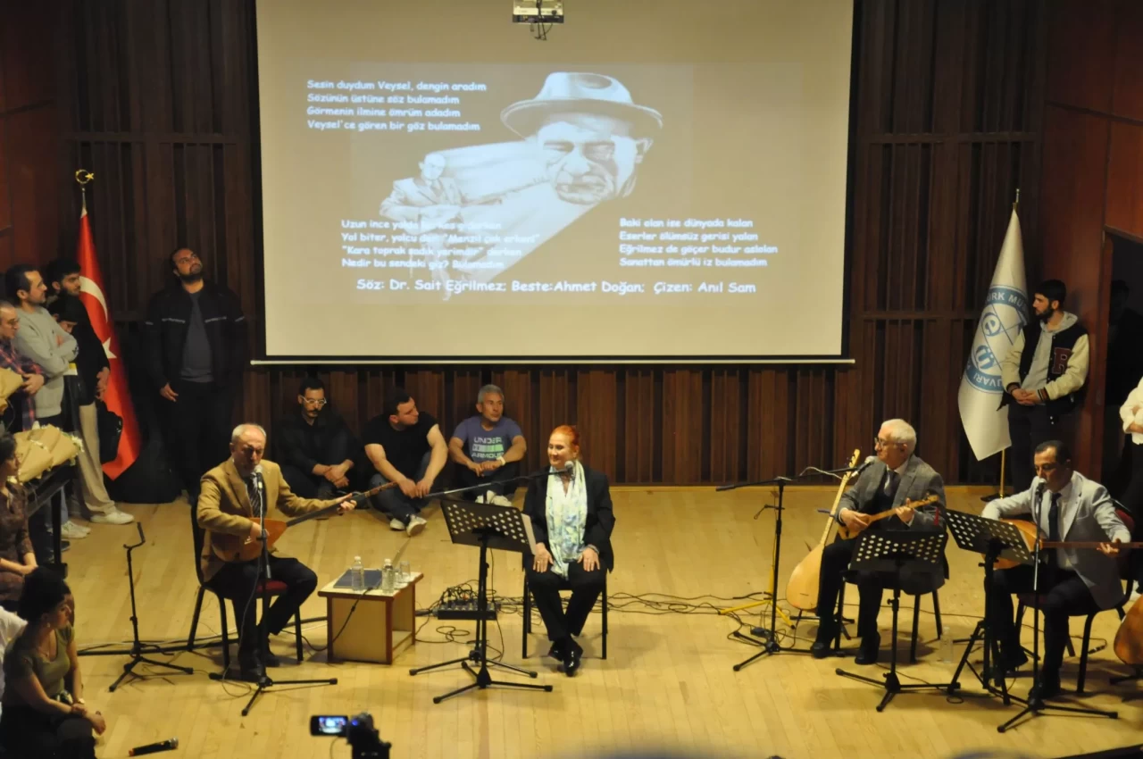 Etkinlikte; ‘Derdimi Dökersem Derin Dereye’, ‘Sen bir Ceylan Olsan’, ‘Gönül Sana Nasihatim’, ‘Güzelliğin On Para Etmez’, ‘Bir Ulu Ağaçtan Bir Yaprak Düşse’, ‘Beni Hor Görme Kardeşim’, ‘Bir Küçük Dünyam Var İçimde Benim’ eserleri seslendirilerek Aşık Veysel anıldı.