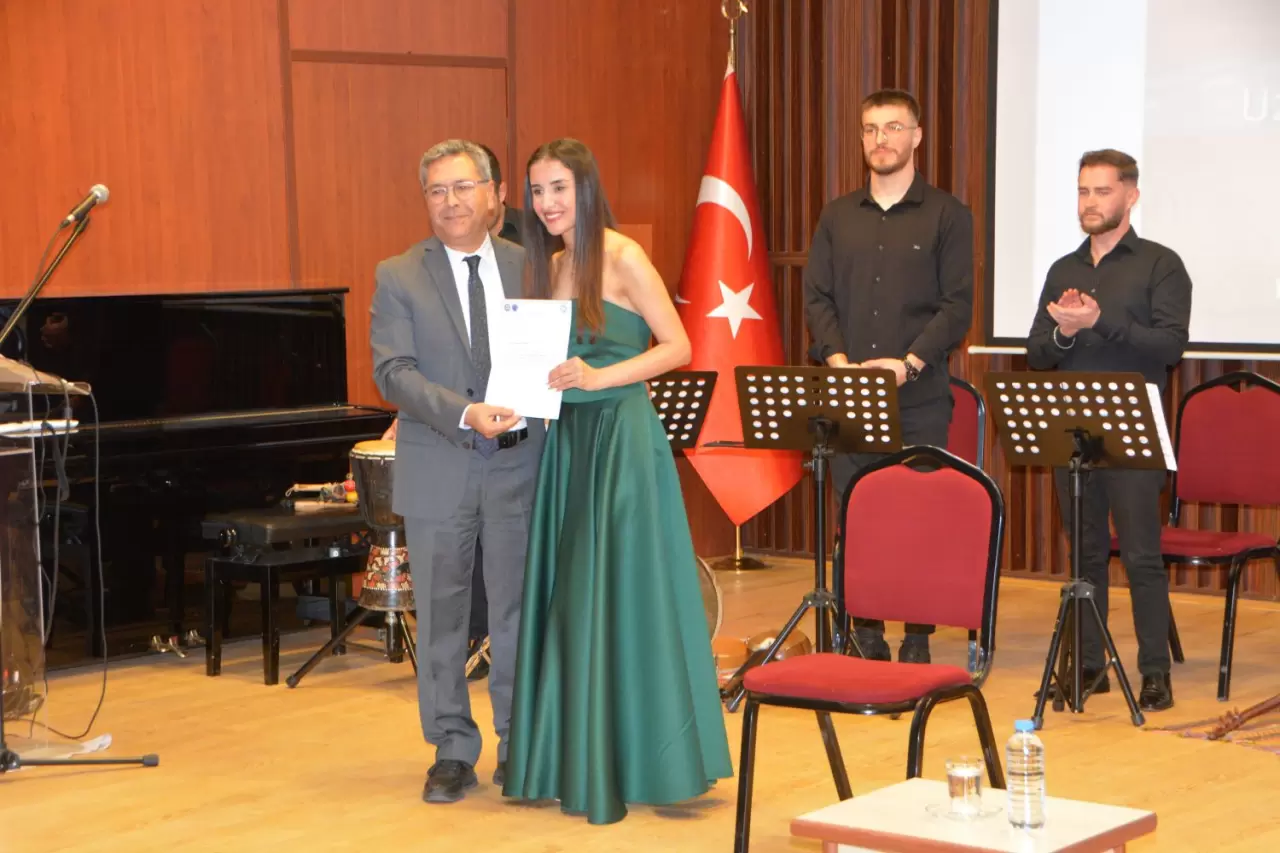 Ege Üniversitesi(EÜ) Devlet Türk Musikisi Konservatuarı’nda (DTMK) Ses Eğitimi Bölümü Lisans 4 öğrencisi Fatma Sürer solistliğinde "Uzun Yollar, Büyük Ezgiler" adlı Türk halk müziği dinletisi gerçekleştirildi DTMK’nın Etkinlik Salonu'nda gerçekleştirilen konsere, DTMK Müdürü Prof. Dr. Ali Maruf Alaskan, konservatuvar yönetimi, akademisyenler, çalışan personel, öğrenciler ve sanatseverler katıldı.