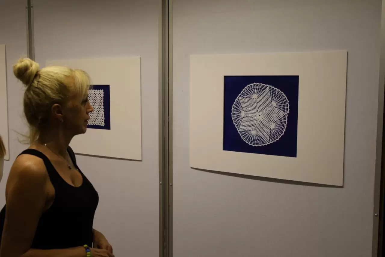 Sergide yer alan çalışmaların üretim sürecini anlatan Doç. Dr. Böcekler, “Burada gördüğünüz bütün görsellerde dantellerin kendileri kullanıldı. Dantelin kendisini koyuyoruz ve üzerinden çektiğimizde ışık almayan yerler beyaz kalıyor, ışık alan yerler mavi oluyor. Güneşte yıkadıktan sonra kâğıdımızda görüntüler oluşuyor” diye konuştu.