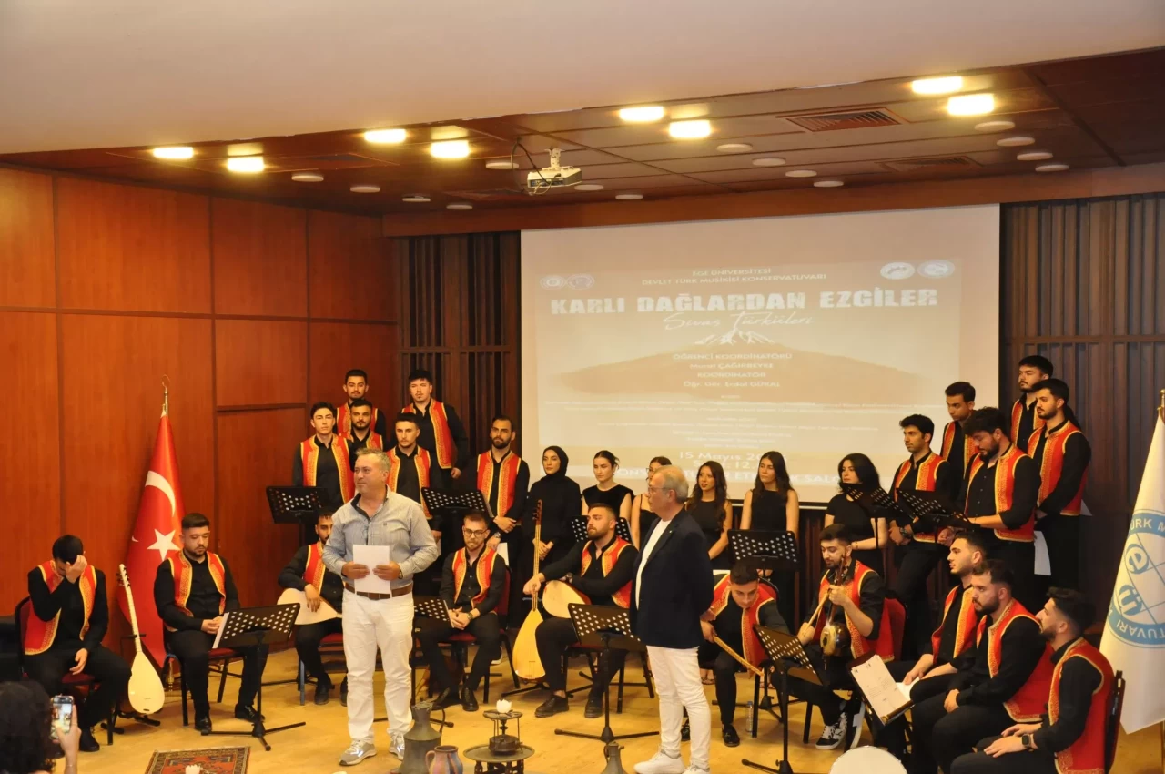 Dinletiye Sivas yöresine ait önemli eserlerden biri olan ‘Evliyalar Menzilidir’ isimli türkü ile başlandı. Yöreye ait önemli diğer türküler; “Ne Deyim Ki Dünya Senin Halına’, ‘Geldim Şu Alemi Islah Edeyim’, ‘Gözleyi Gözleyi Gözüm Dört Oldu’, ‘Ağlayalım Atatürk’e ve Ötme Bülbül” adlı eserler bağlama ailesi, koro, üflemeli grubu, kabak kemane ve ritim eşliğinde seslendirildi.