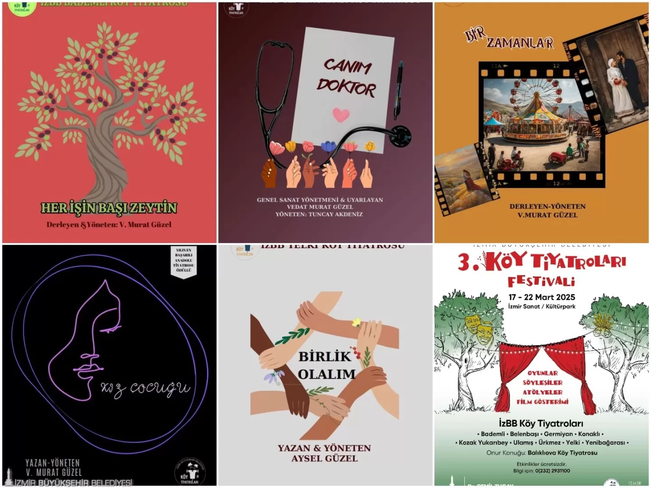 İzmir Büyükşehir Belediyesi Köy Tiyatroları; Bergama Kozak, Foça Yenibağarası, Ödemiş Konaklı, Çeşme Germiyan, Urla Barbaros, Dikili Bademli, Buca Belenbaşı, Güzelbahçe Yelki, Seferihisar Ürkmez ve Ulamış olmak üzere 10 yerde 200’e yakın katılımcısıyla sanatı kırsal bölgelere ulaştırıyor. 17-22 Mart tarihlerinde Kültürpark’taki İzmir Sanat Merkezi’nde gerçekleştirilecek 3. Köy Tiyatroları Festivali yurttaşları tiyatro oyunu, söyleşi, atölye ve film gösterimleriyle buluşturacak. Festivalin bu yılki onur konuğu ise Balıklıova Köy Tiyatrosu olacak. Festival boyunca tüm etkinlikler ücretsiz takip edilebilecek.